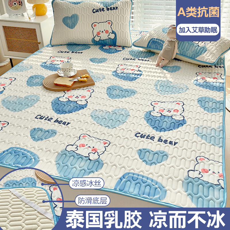 아이스 실크 라텍스 매트 3 개 4 개 세트 어린이 세척 가능한 침대 모자 싱글 패드 에어컨 매트 여름 시즌 2025 새로운스토어 가기