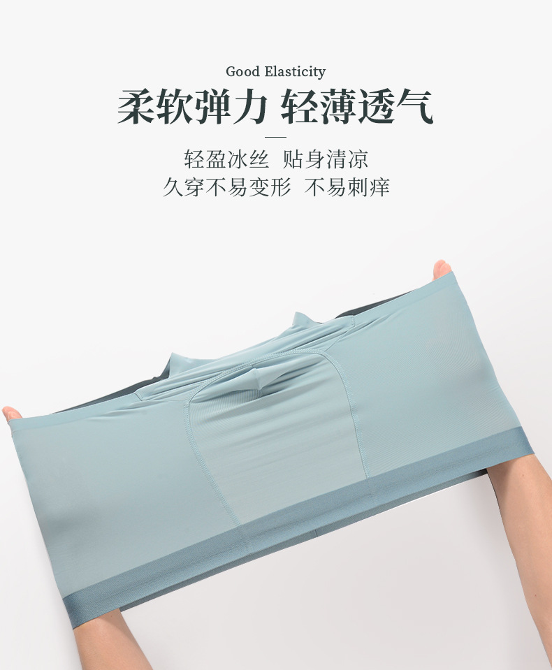 여름용 누드감 아이스 실크 남성 속옷 무봉제 시원하고 통기성 좋은 사각팬티 남성용 항균 사각팬티
