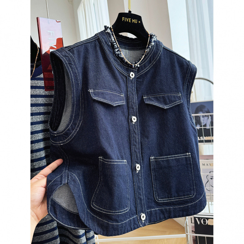 하이 엔드 외국 스타일의 세련된 민소매 데님 양복 조끼 코트 여성용 겉옷 봄 가을 재킷 탑스토어 가기