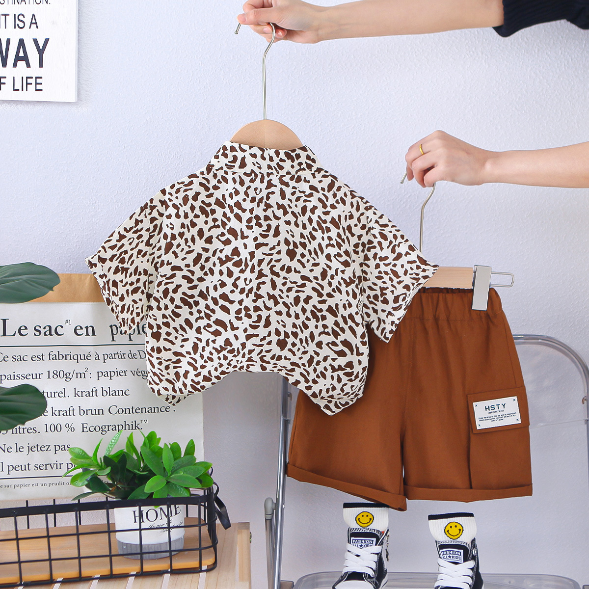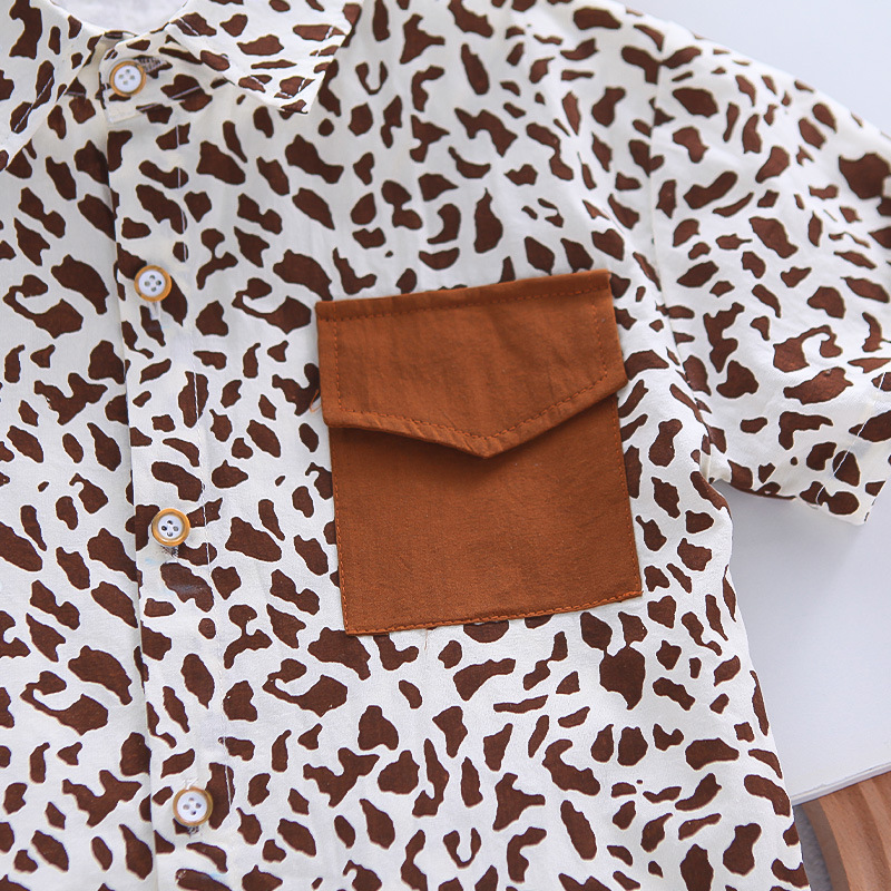 소년 여름 서양식 인터넷 인기 반팔 세트 2025 새로운 여름 어린이 레오파드 무늬 셔츠 반팔 세트 트렌디스토어 가기