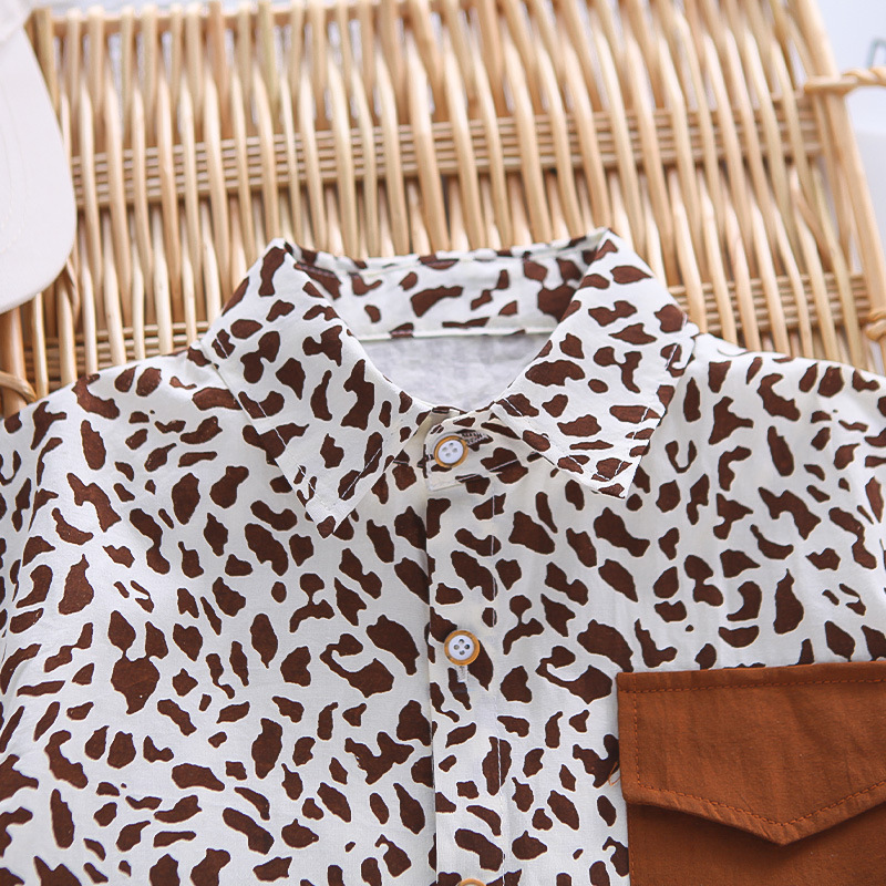 소년 여름 서양식 인터넷 인기 반팔 세트 2025 새로운 여름 어린이 레오파드 무늬 셔츠 반팔 세트 트렌디