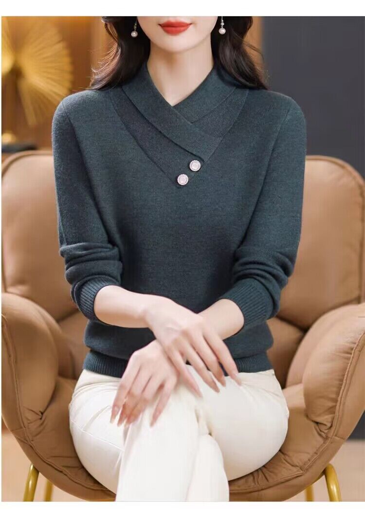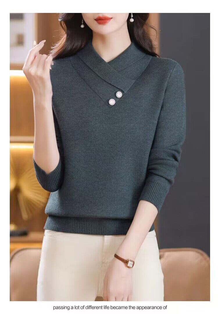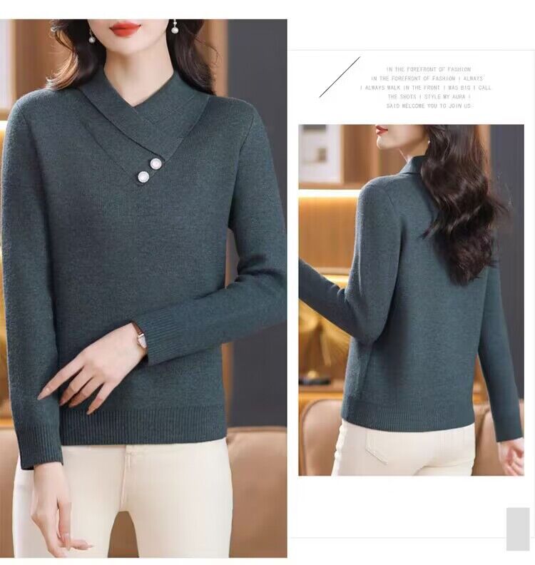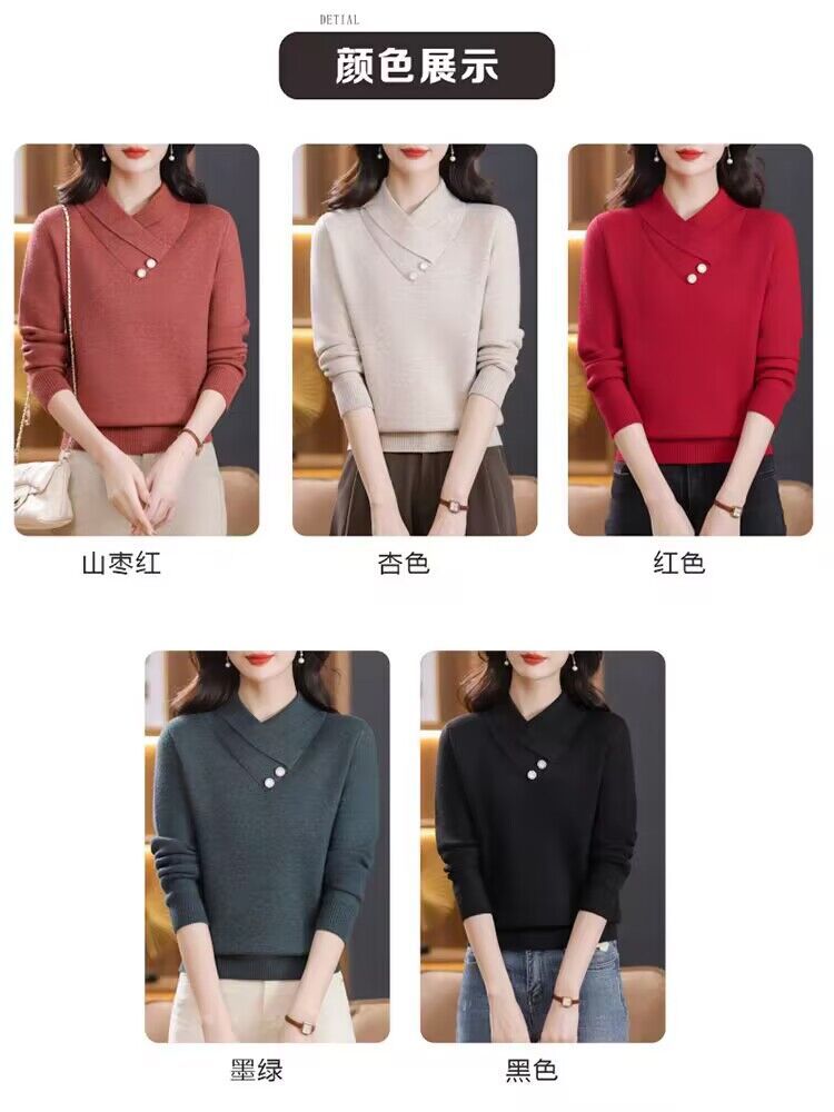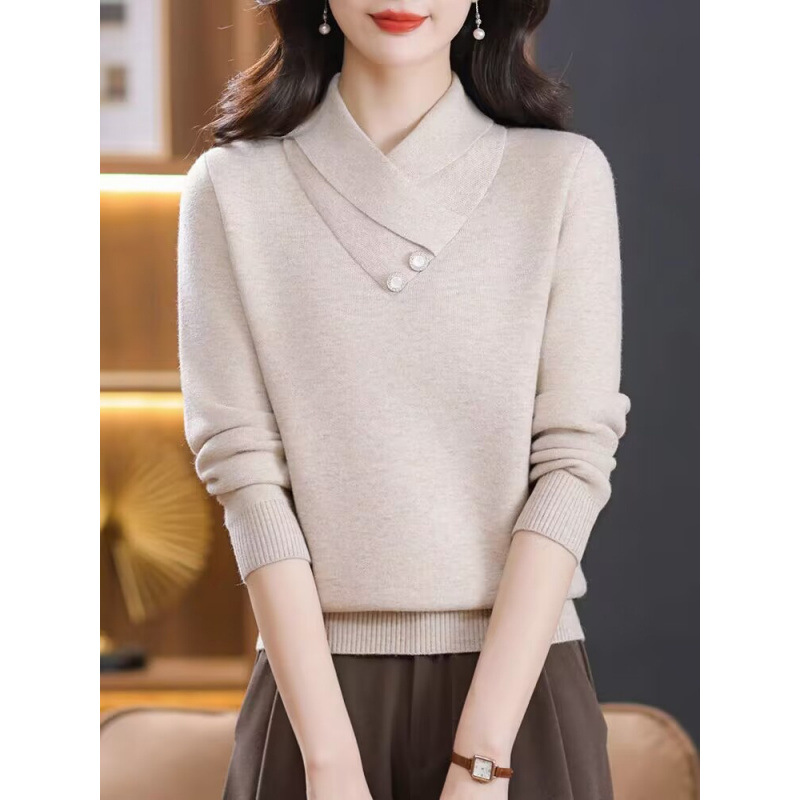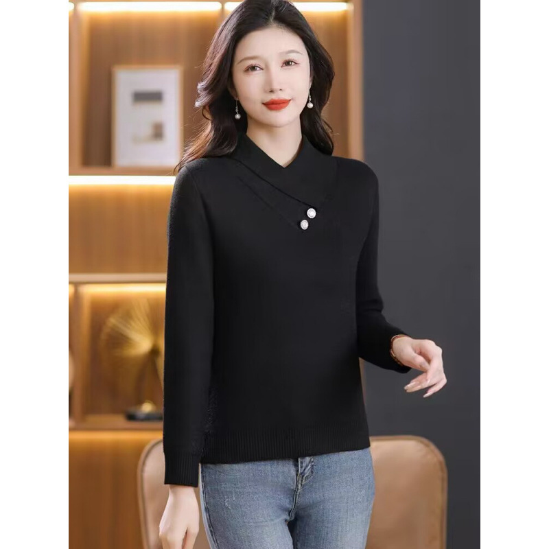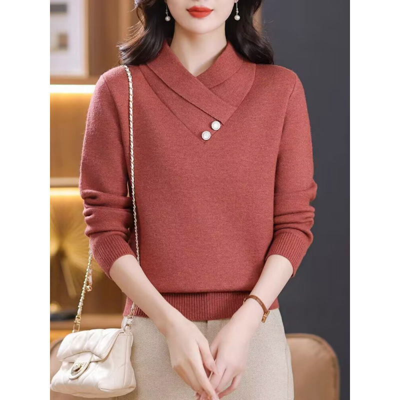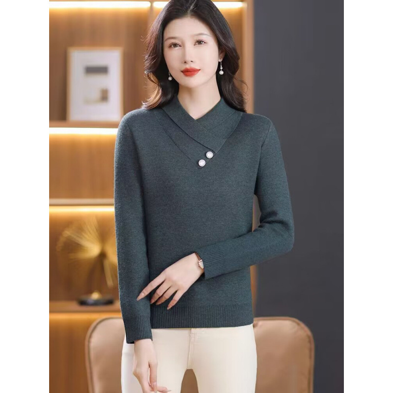 크로스넥 스웨터 여성용 2026 신상 가을 겨울 한국 스타일 엄마용 솔리드 컬러 따뜻한 니트 셔츠 이너웨어 탑
