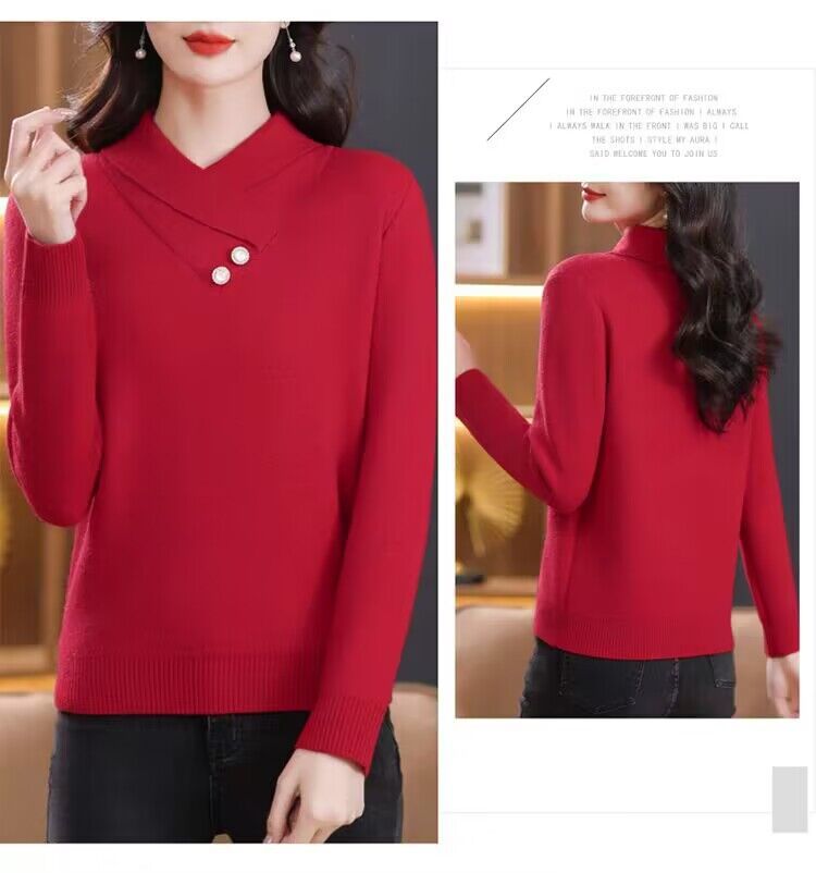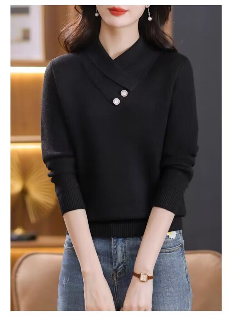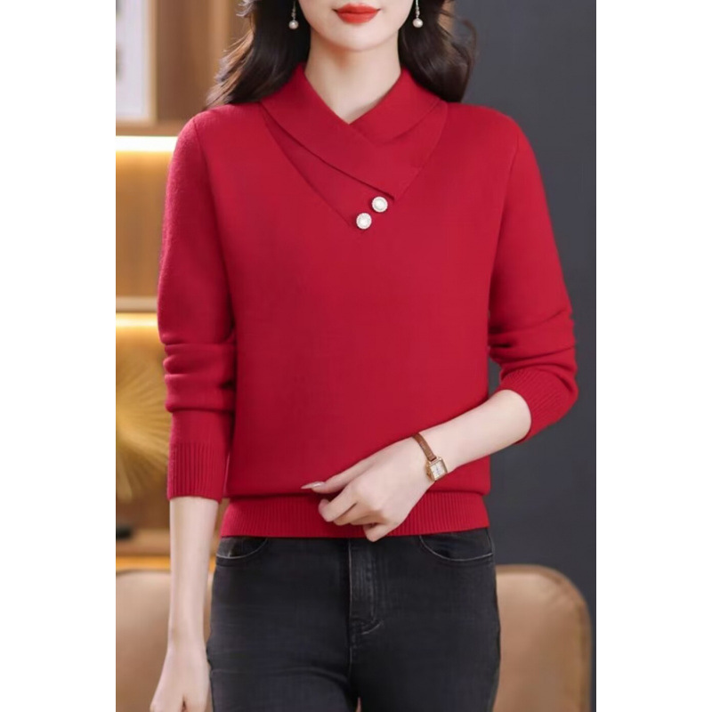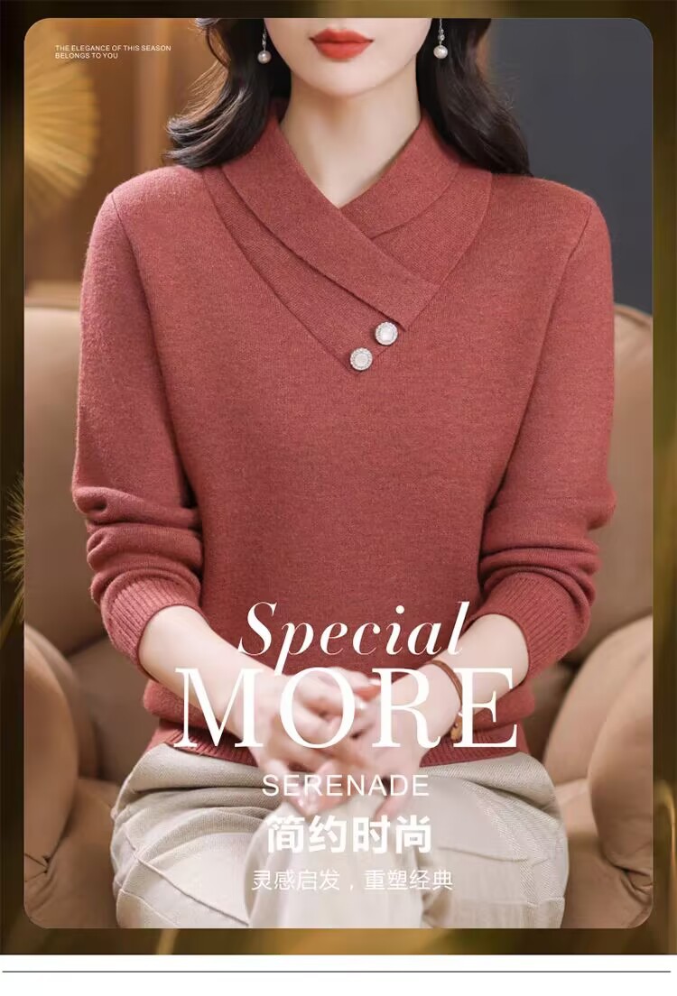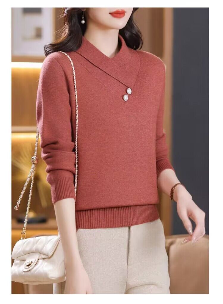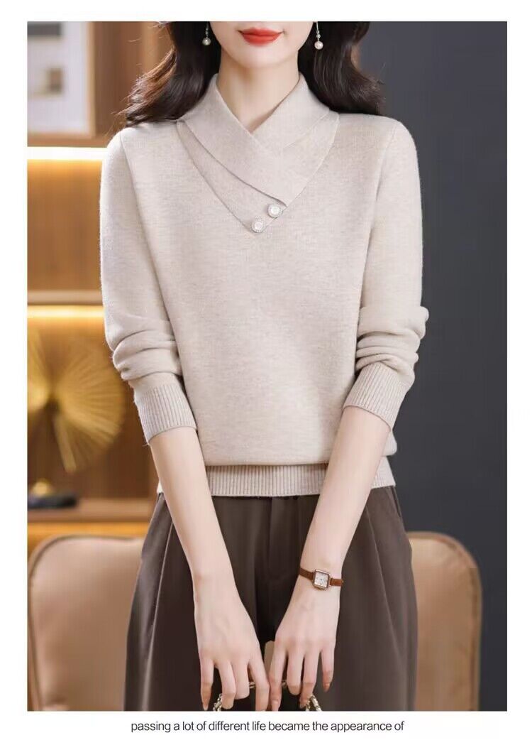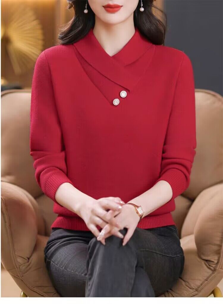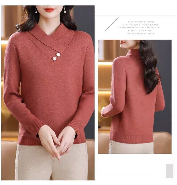 크로스넥 스웨터 여성용 2026 신상 가을 겨울 한국 스타일 엄마용 솔리드 컬러 따뜻한 니트 셔츠 이너웨어 탑