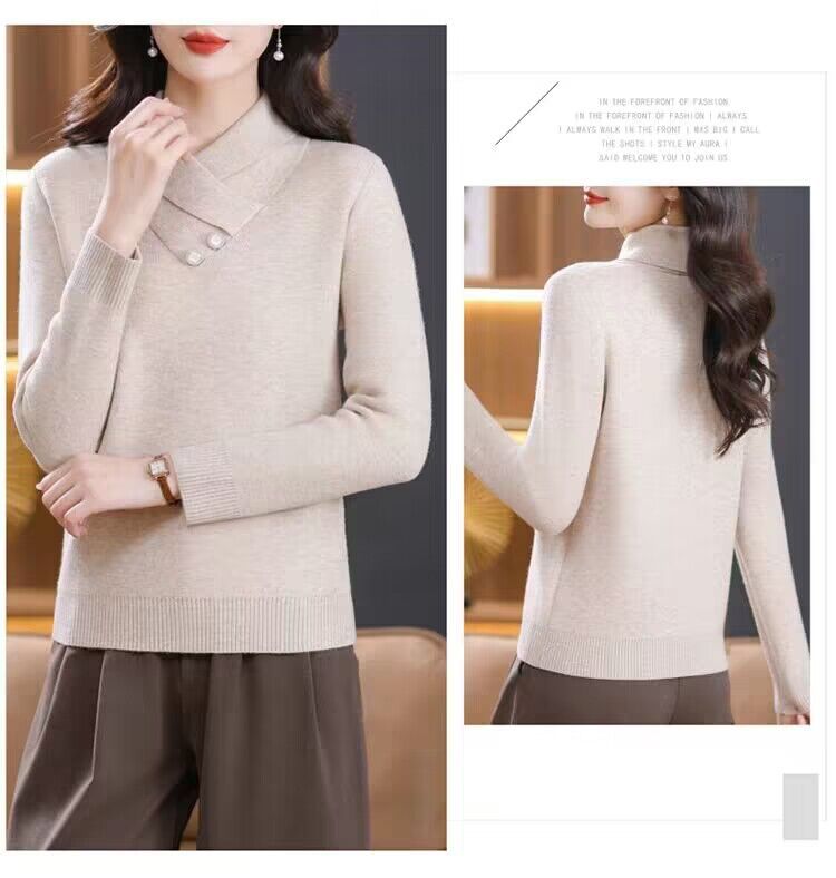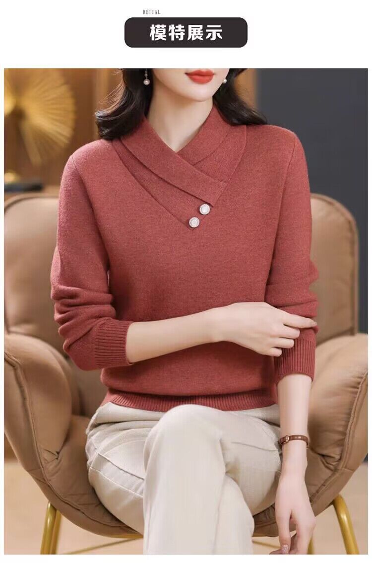 크로스넥 스웨터 여성용 2026 신상 가을 겨울 한국 스타일 엄마용 솔리드 컬러 따뜻한 니트 셔츠 이너웨어 탑스토어 가기