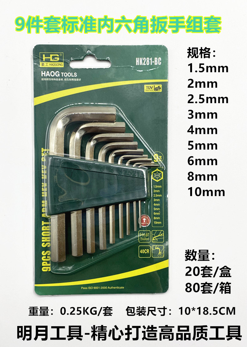 하오 공 브랜드 9 피스 니켈 도금 표준 앨런 렌치 세트 (짧은 평면)