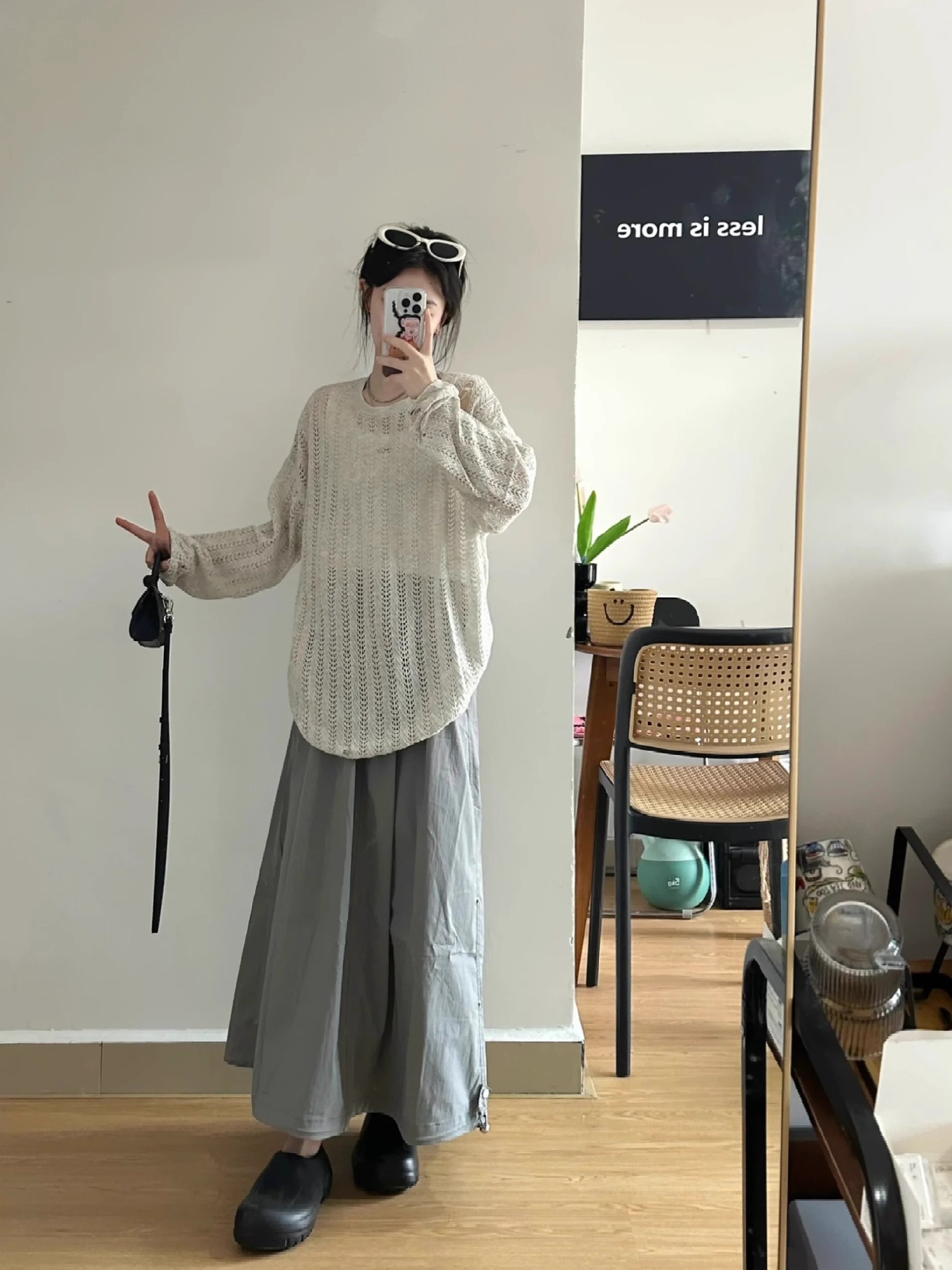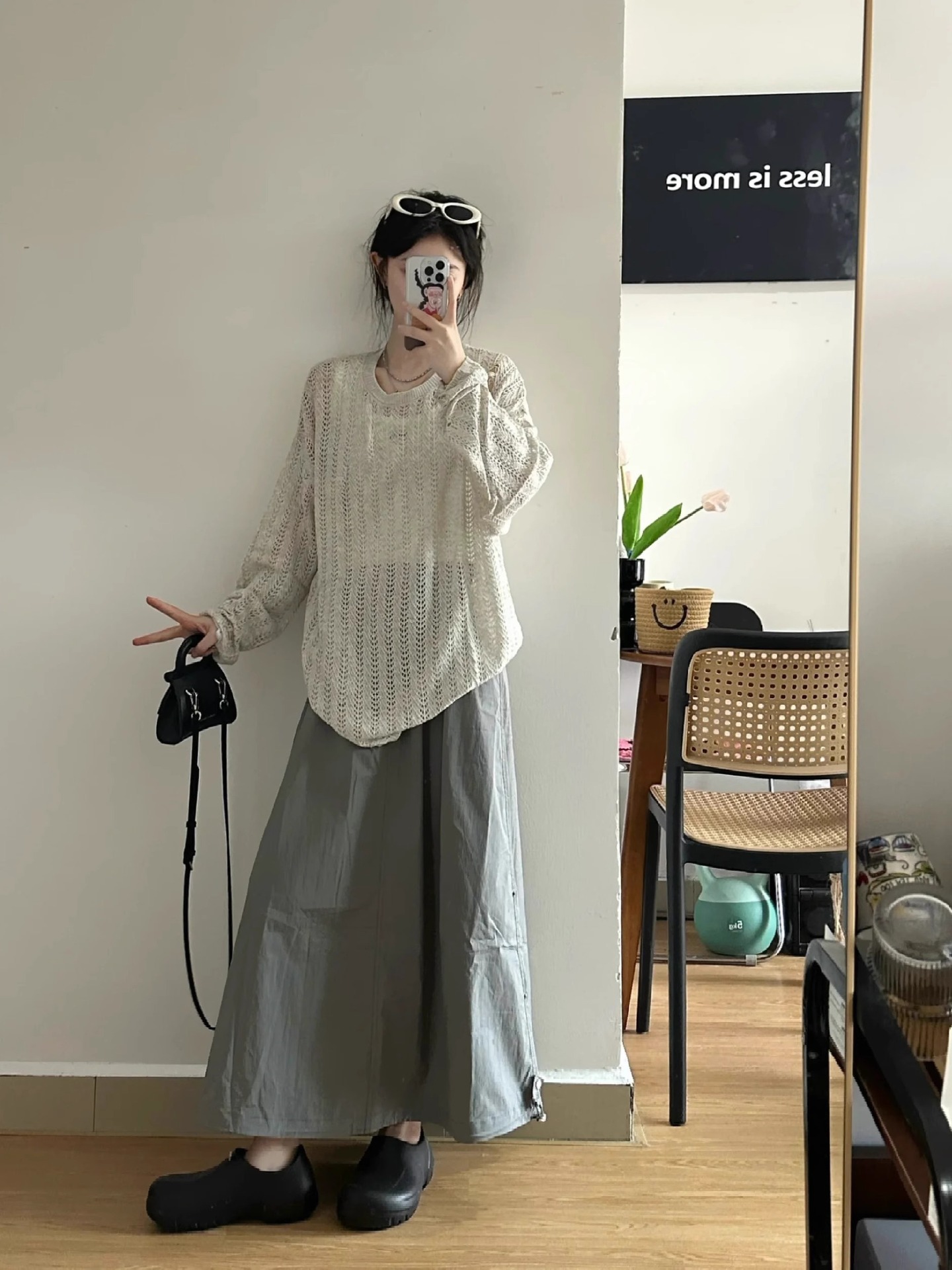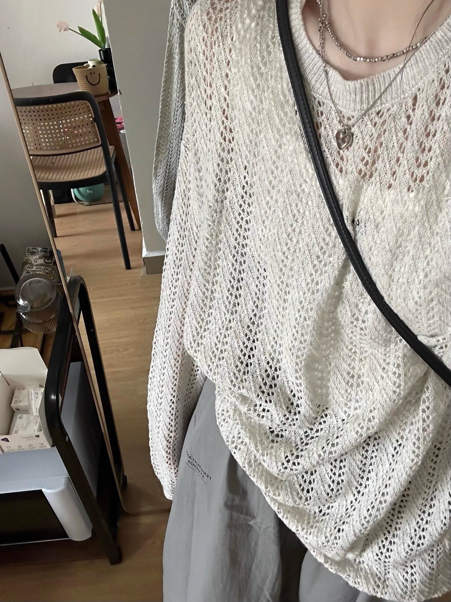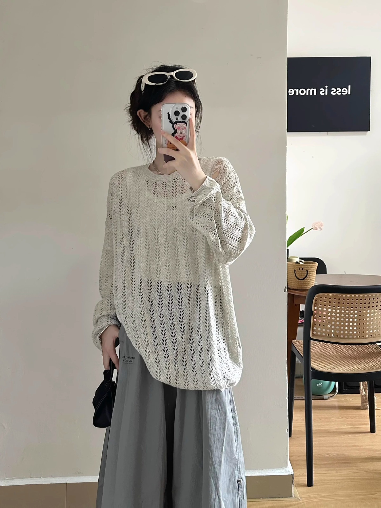 얇은 빈 셔츠 구멍 여름 느슨한 게으른 스타일 캐주얼 라운드 넥 니트 셔츠 여성용 외부 탑