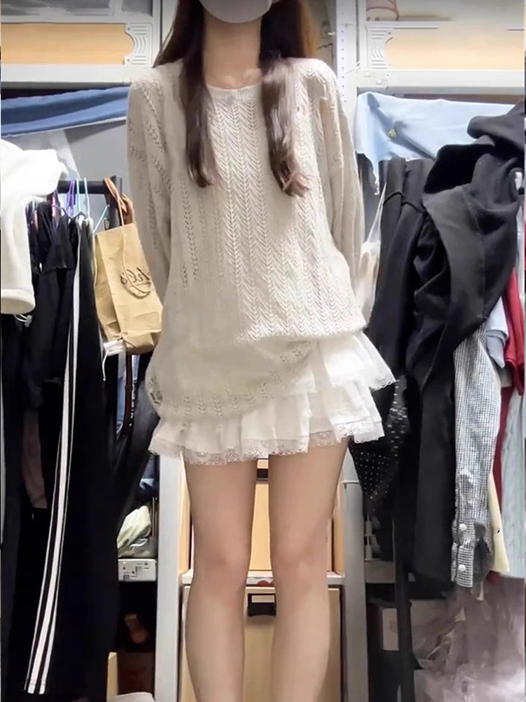 얇은 빈 셔츠 구멍 여름 느슨한 게으른 스타일 캐주얼 라운드 넥 니트 셔츠 여성용 외부 탑스토어 가기