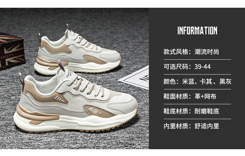 포레스트 검프 남성 신발 가을 가죽 운동화 남성 올 매치 캐주얼 신발 달리기 미끄럼 방지 증가 아빠 트렌디 신발 봄스토어 가기