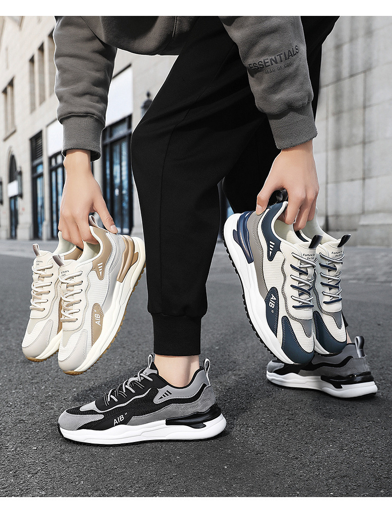 포레스트 검프 남성 신발 가을 가죽 운동화 남성 올 매치 캐주얼 신발 달리기 미끄럼 방지 증가 아빠 트렌디 신발 봄