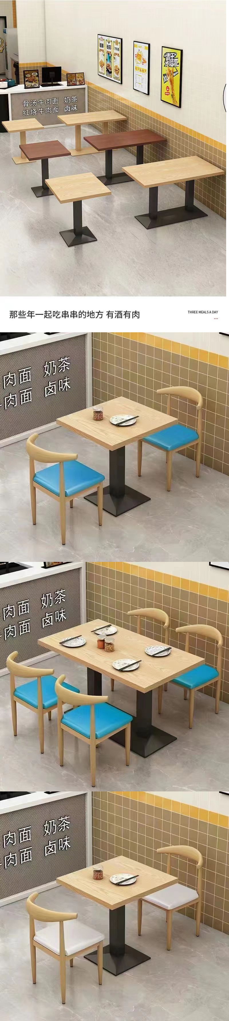 스낵 국수 레스토랑 바베큐 아침 식사 패스트 푸드 테이블과 의자 조합 우유 차 디저트 레스토랑 테이블 상업 경제