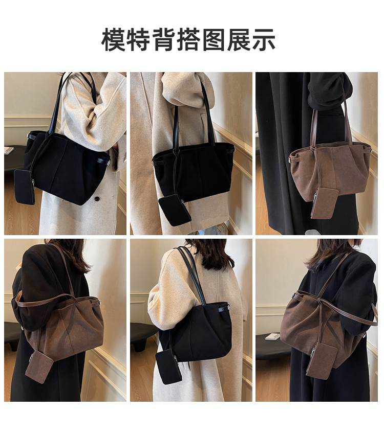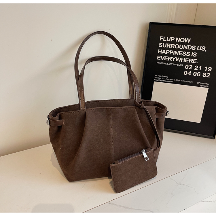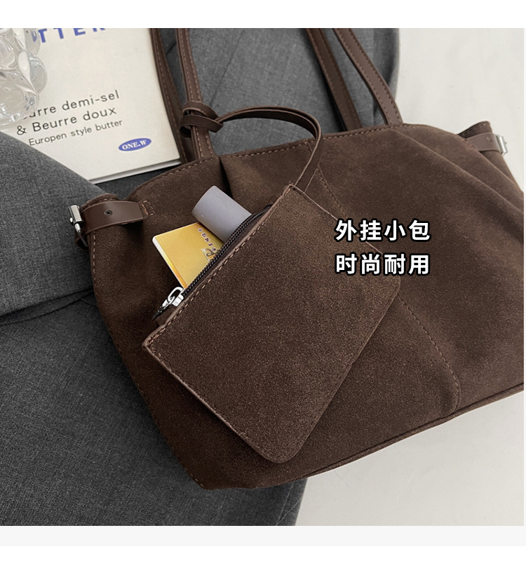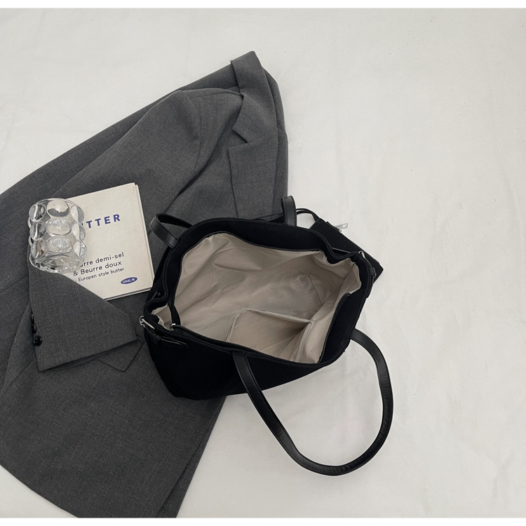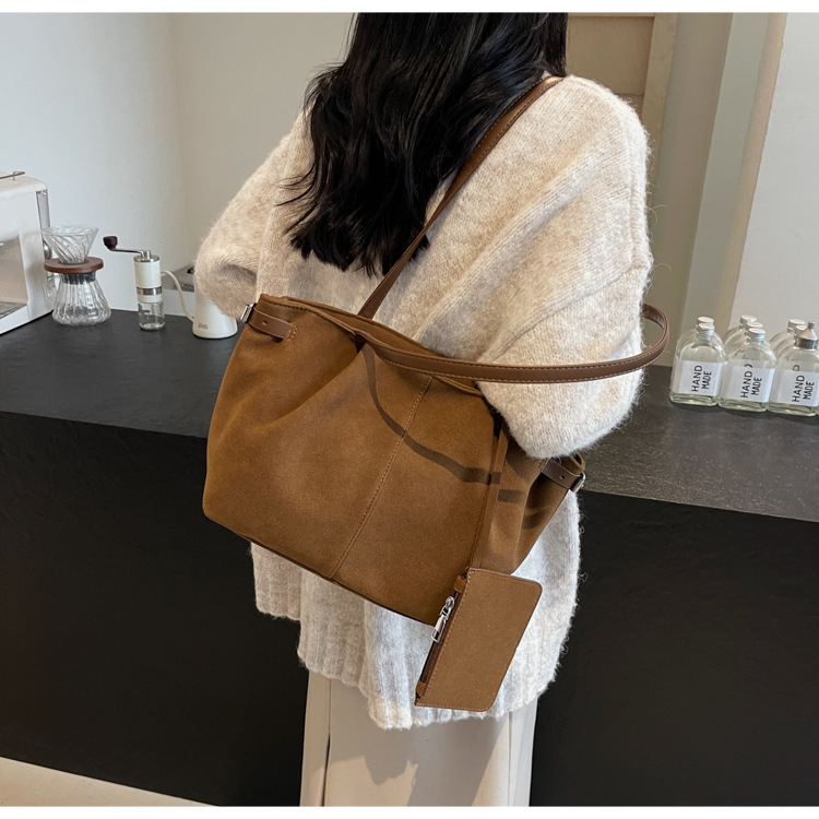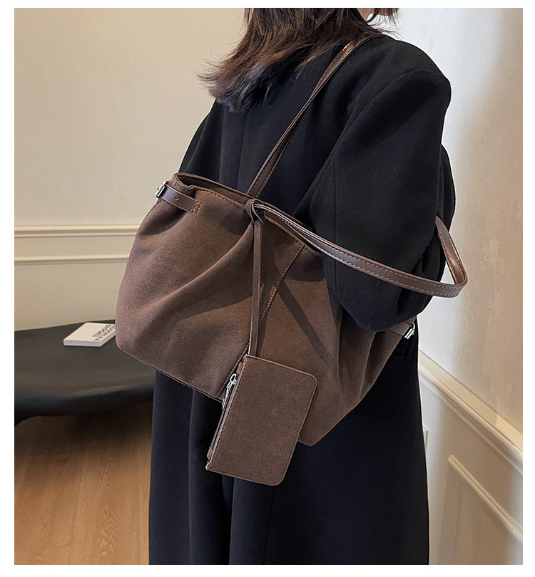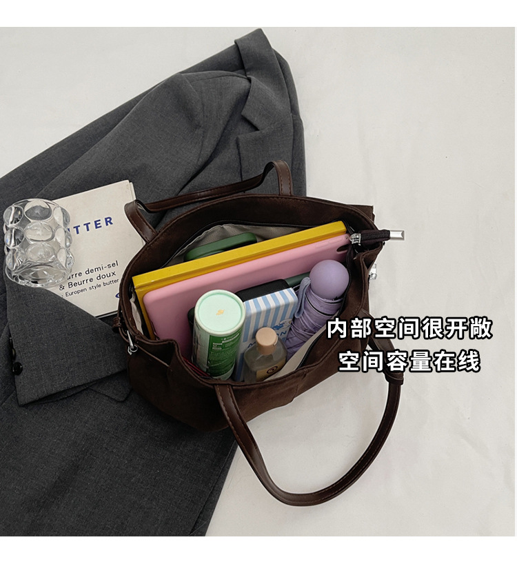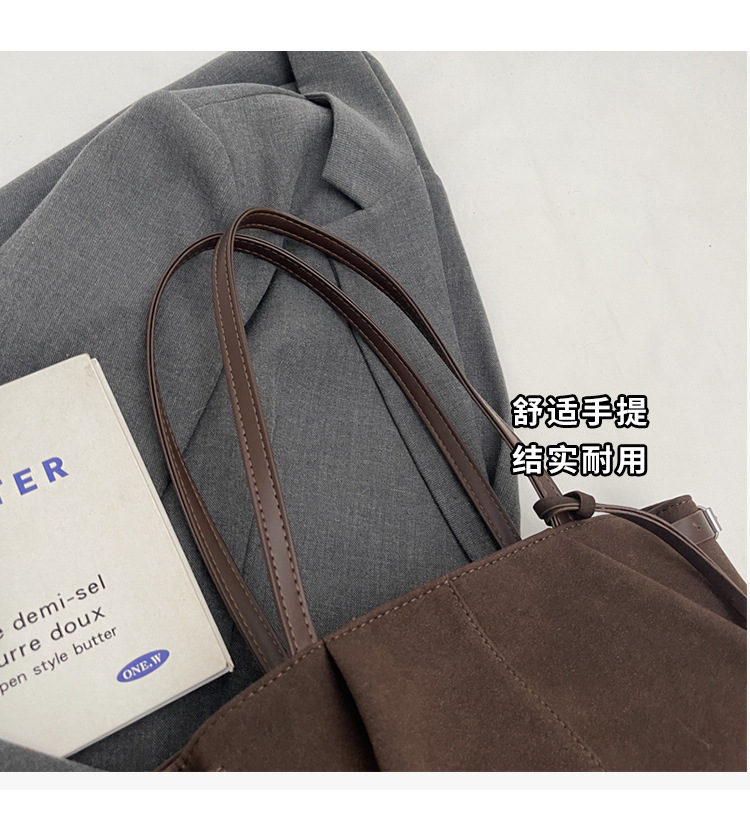 한국 스타일 대용량 토트 백 여성의 새로운 틈새 통근 휴대용 어깨 가방 가을과 겨울 캐주얼 스웨이드 2024