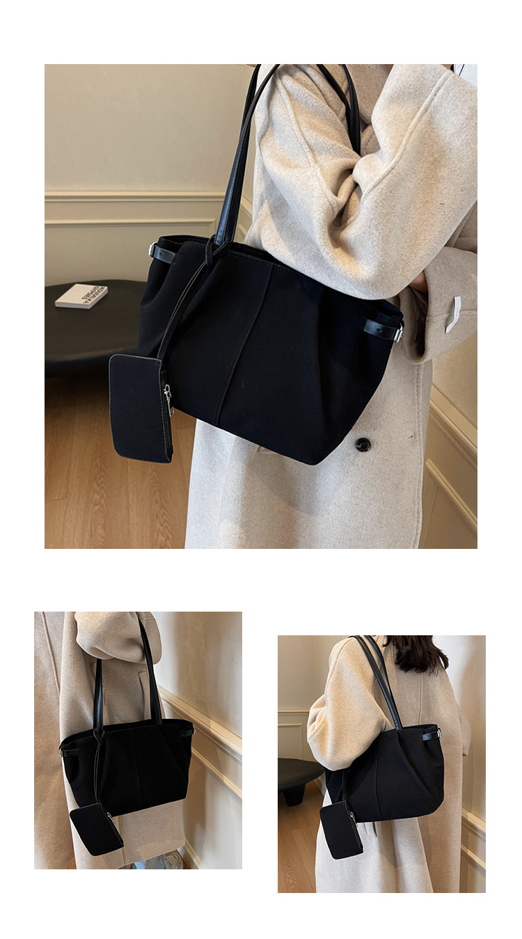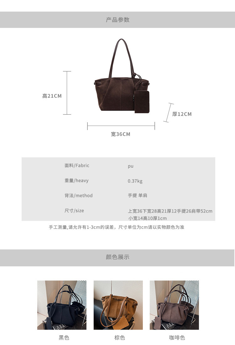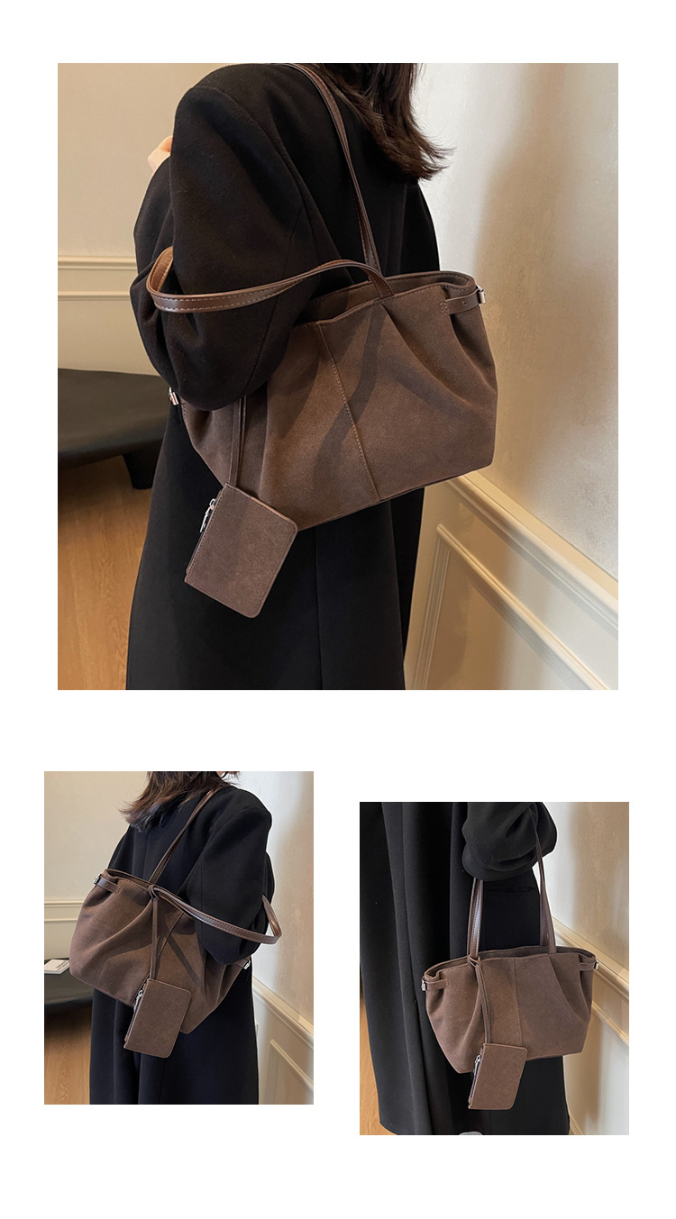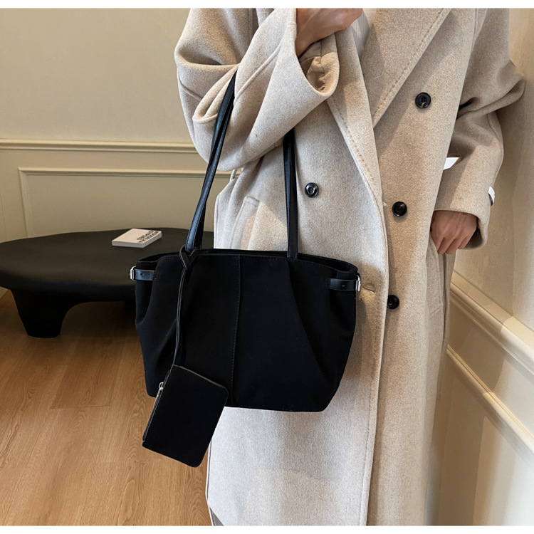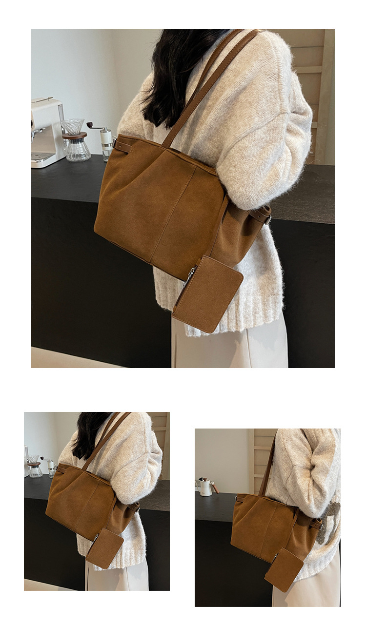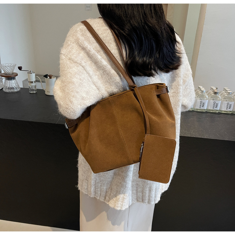 한국 스타일 대용량 토트 백 여성의 새로운 틈새 통근 휴대용 어깨 가방 가을과 겨울 캐주얼 스웨이드 2024