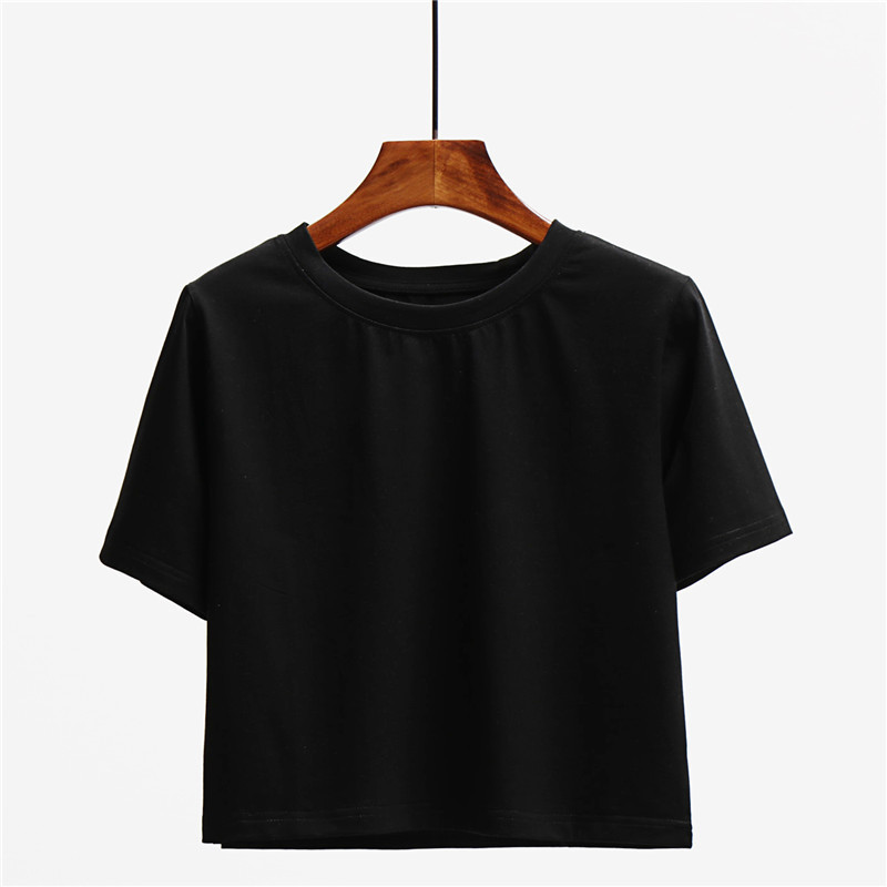 솔리드 컬러 반팔 티셔츠 여성 여름 쇼트 탑 루즈 학생 캐주얼 티셔츠 반소매 2020 한국 스타일