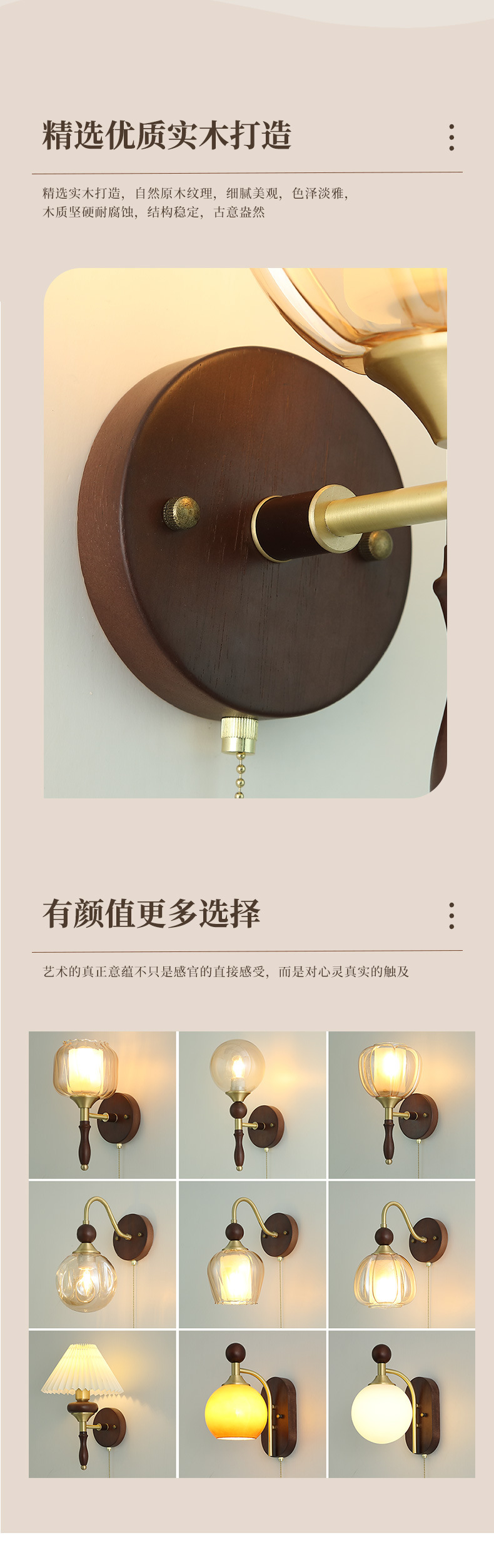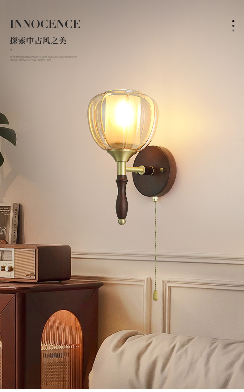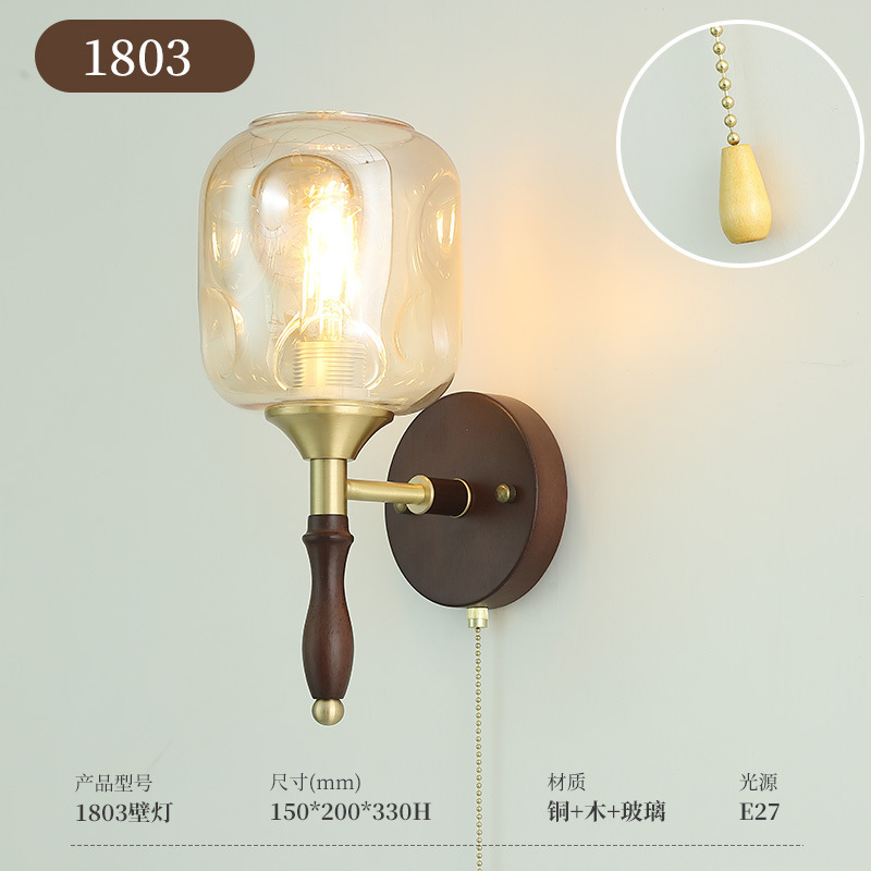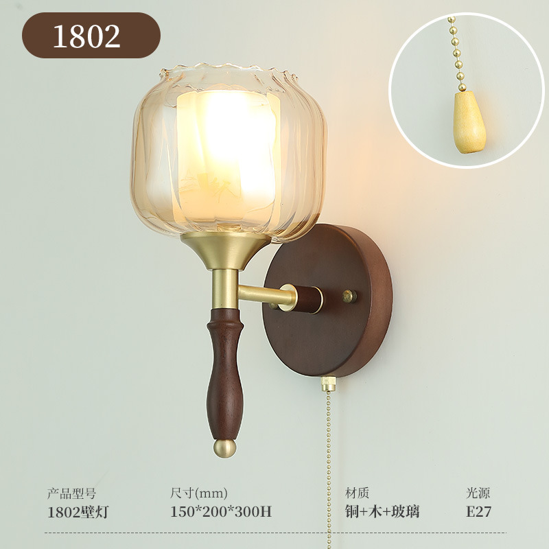 단단한 나무 새로운 중국 침실 벽 램프 창조적 인 유리 통로 거실 배경 벽 램프 창조적 인 차 방 램프스토어 가기