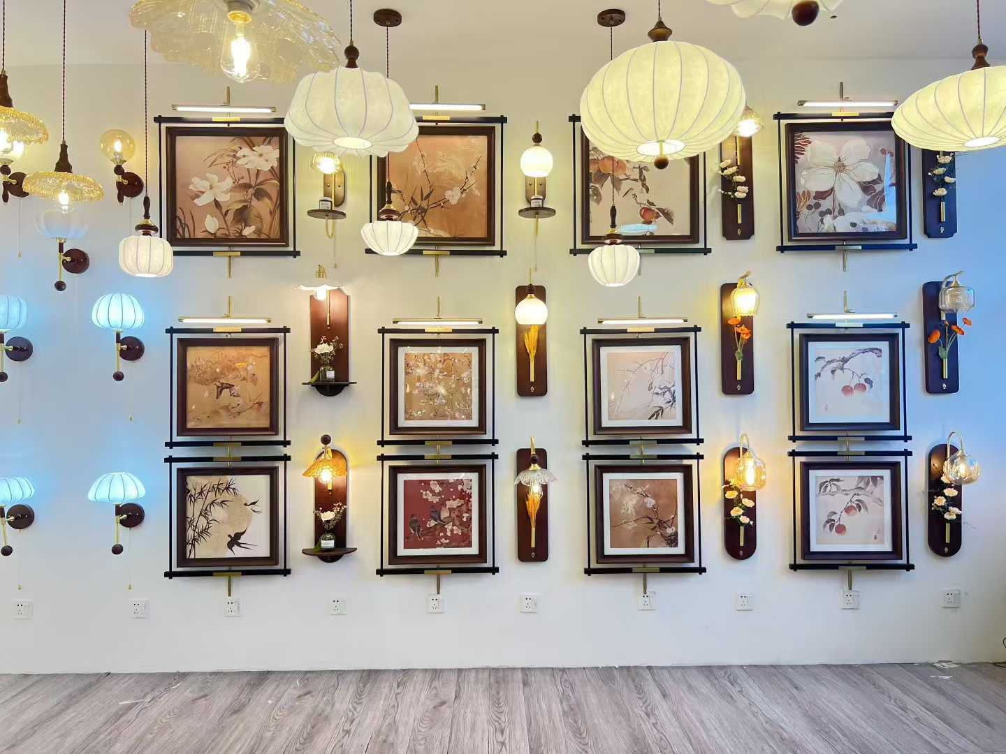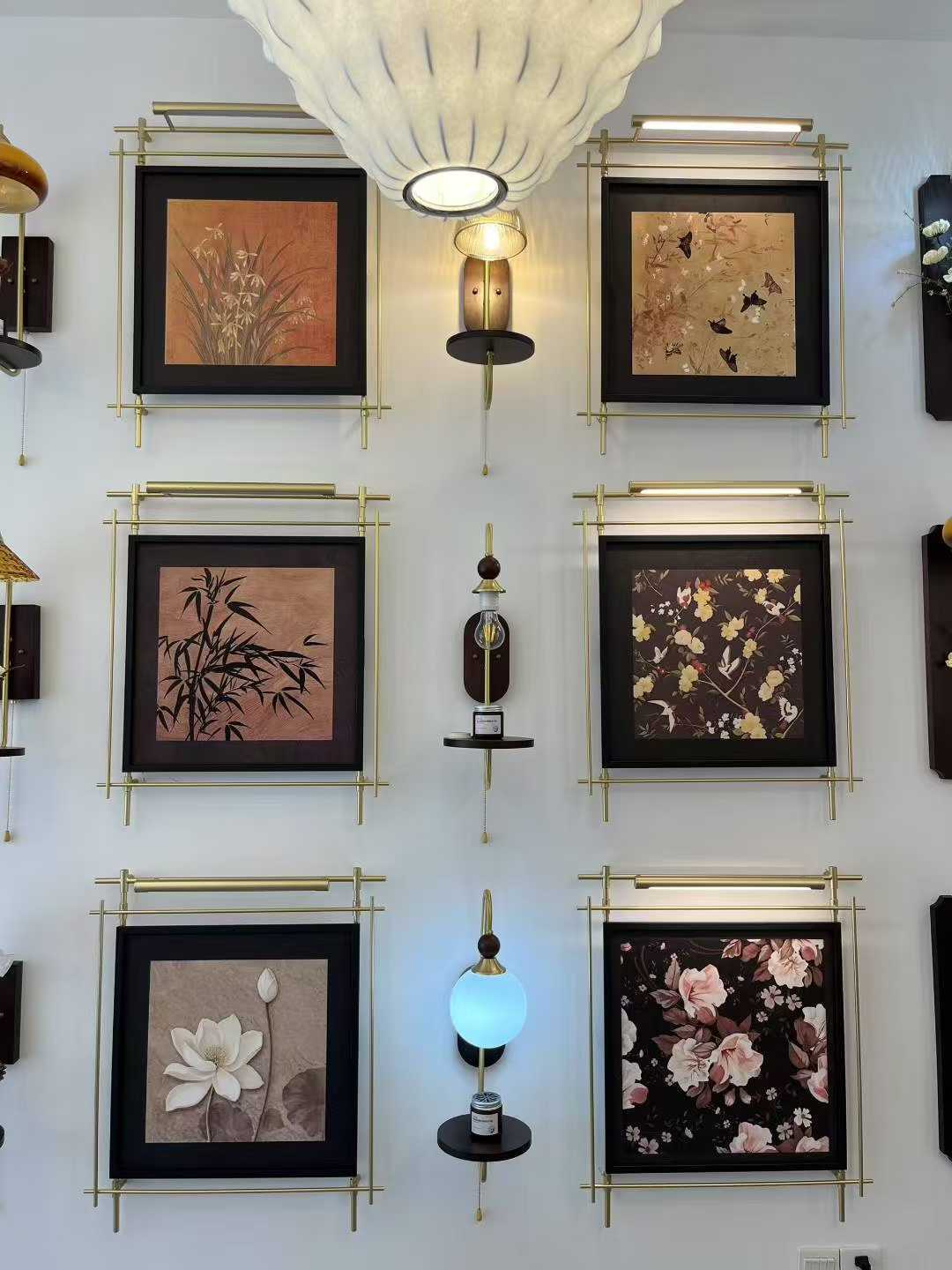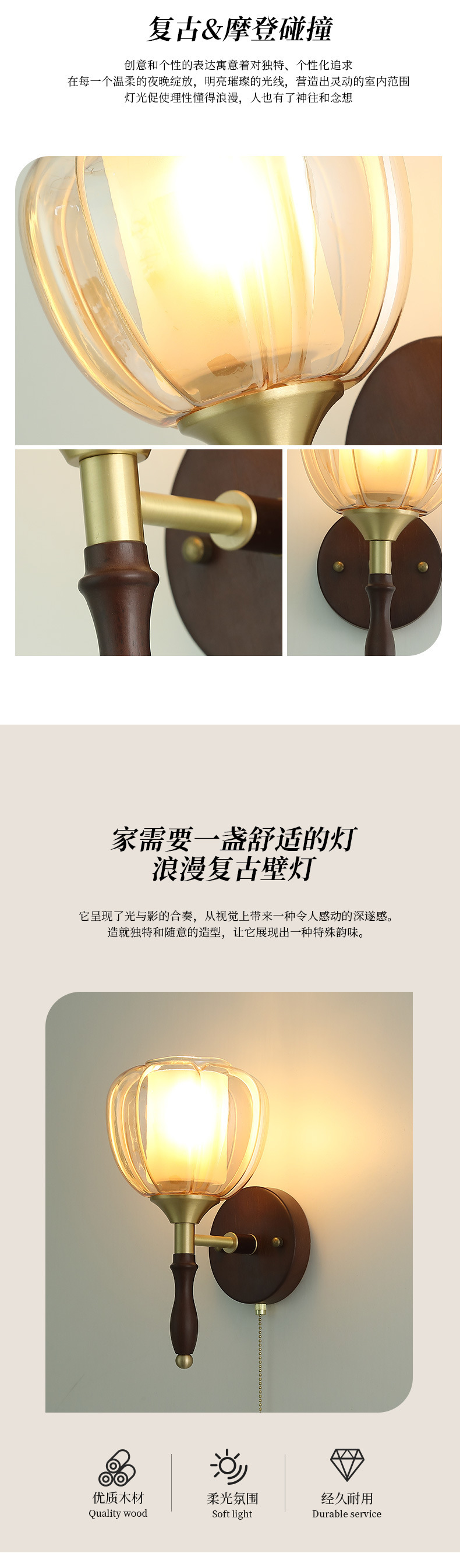 단단한 나무 새로운 중국 침실 벽 램프 창조적 인 유리 통로 거실 배경 벽 램프 창조적 인 차 방 램프스토어 가기