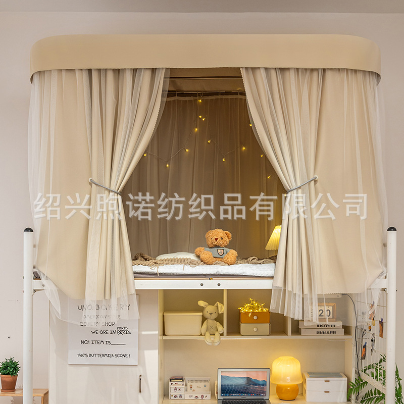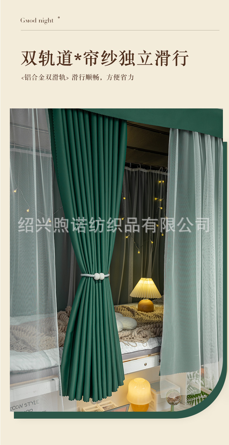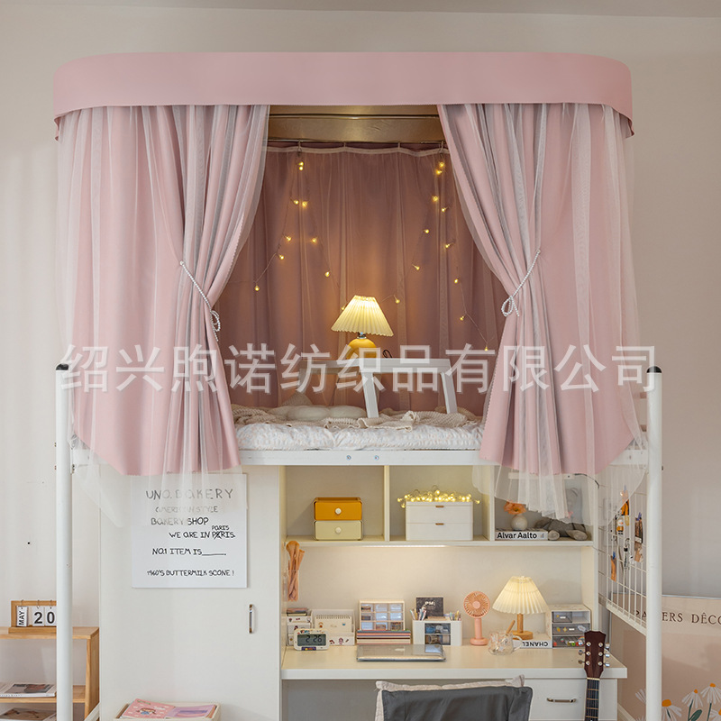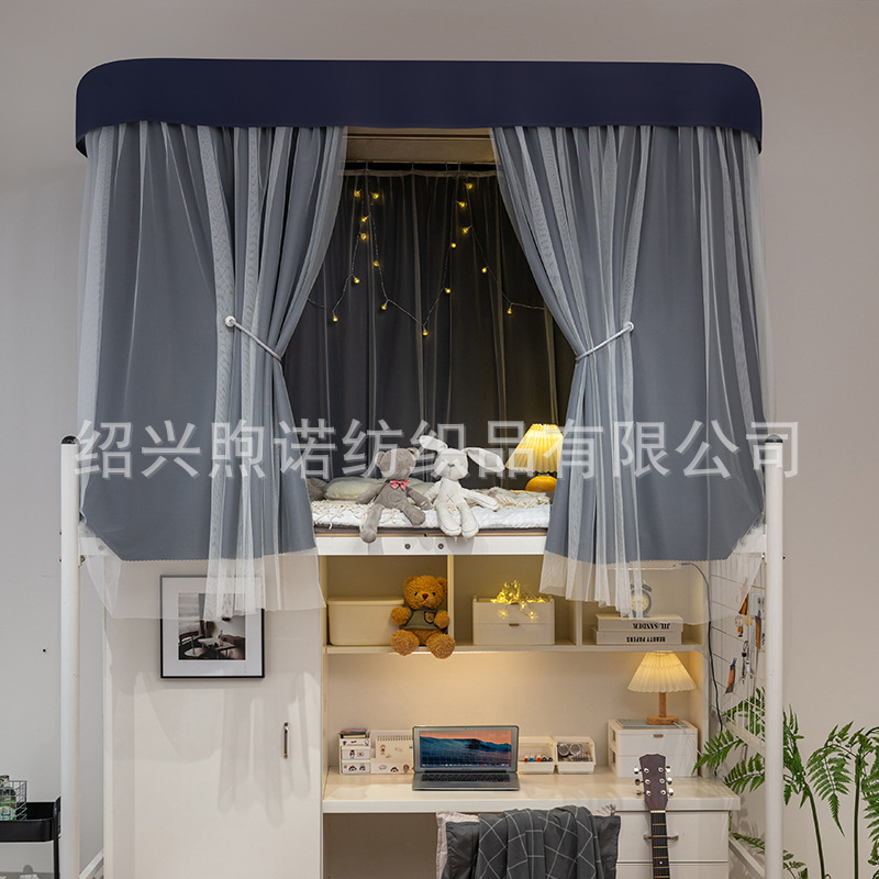 U자형 이중 슬라이딩 트랙 학생 기숙사 강력 차광 침대 커튼 모기장 일체형 상하층 침대 기숙사 U자형 커튼