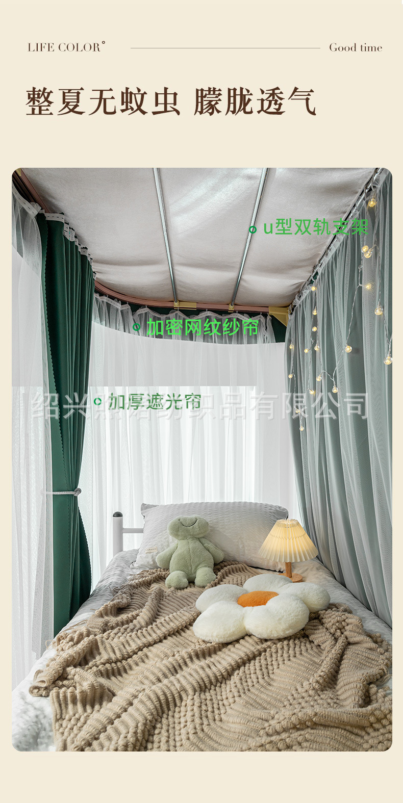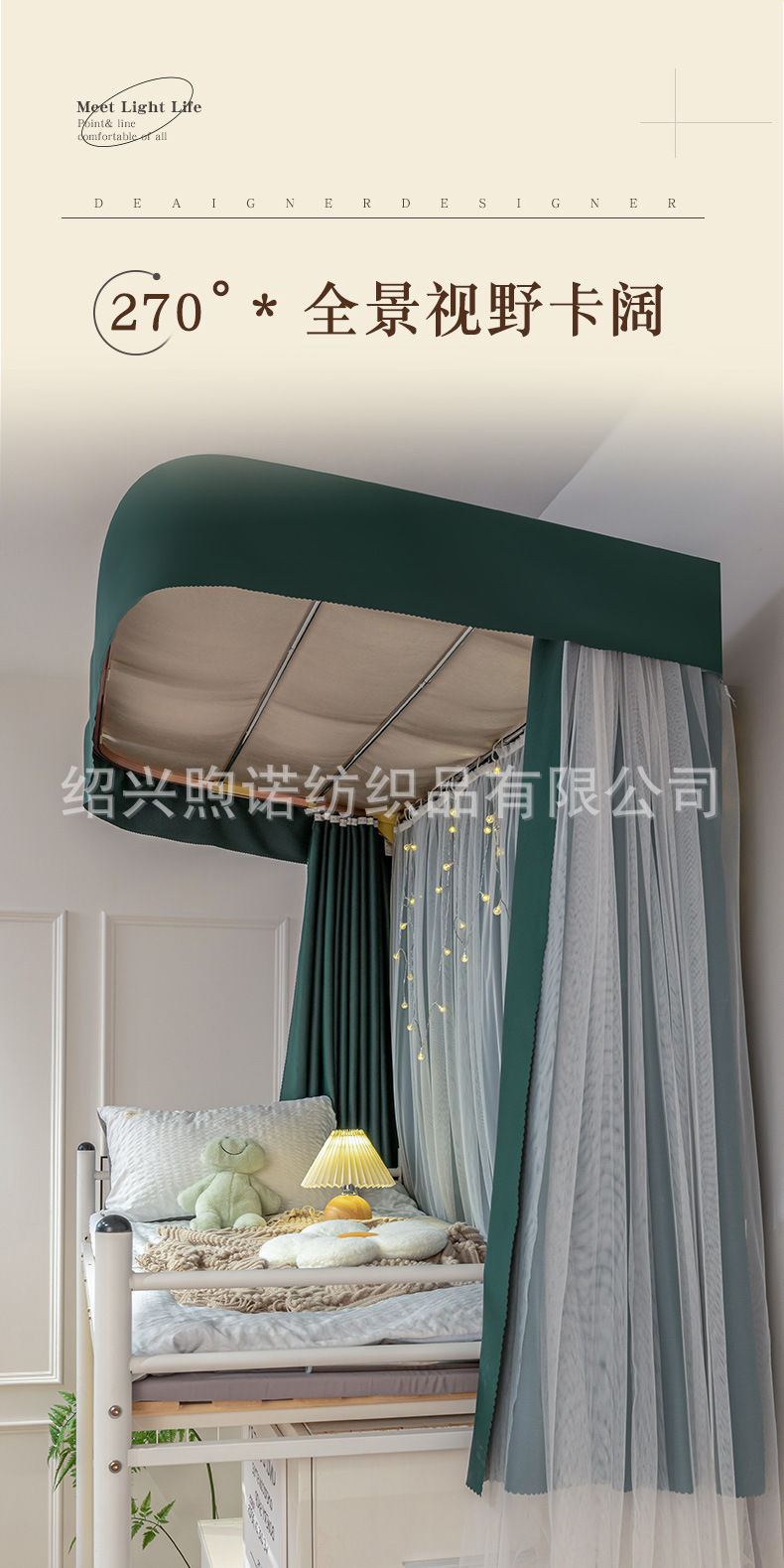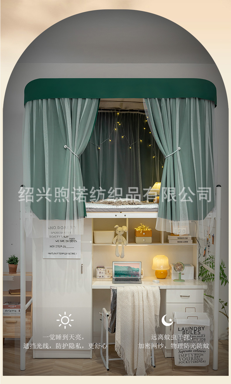 U자형 이중 슬라이딩 트랙 학생 기숙사 강력 차광 침대 커튼 모기장 일체형 상하층 침대 기숙사 U자형 커튼