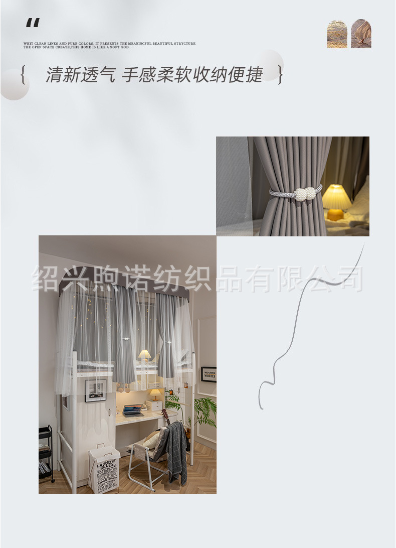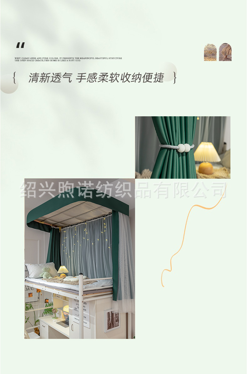 U자형 이중 슬라이딩 트랙 학생 기숙사 강력 차광 침대 커튼 모기장 일체형 상하층 침대 기숙사 U자형 커튼스토어 가기
