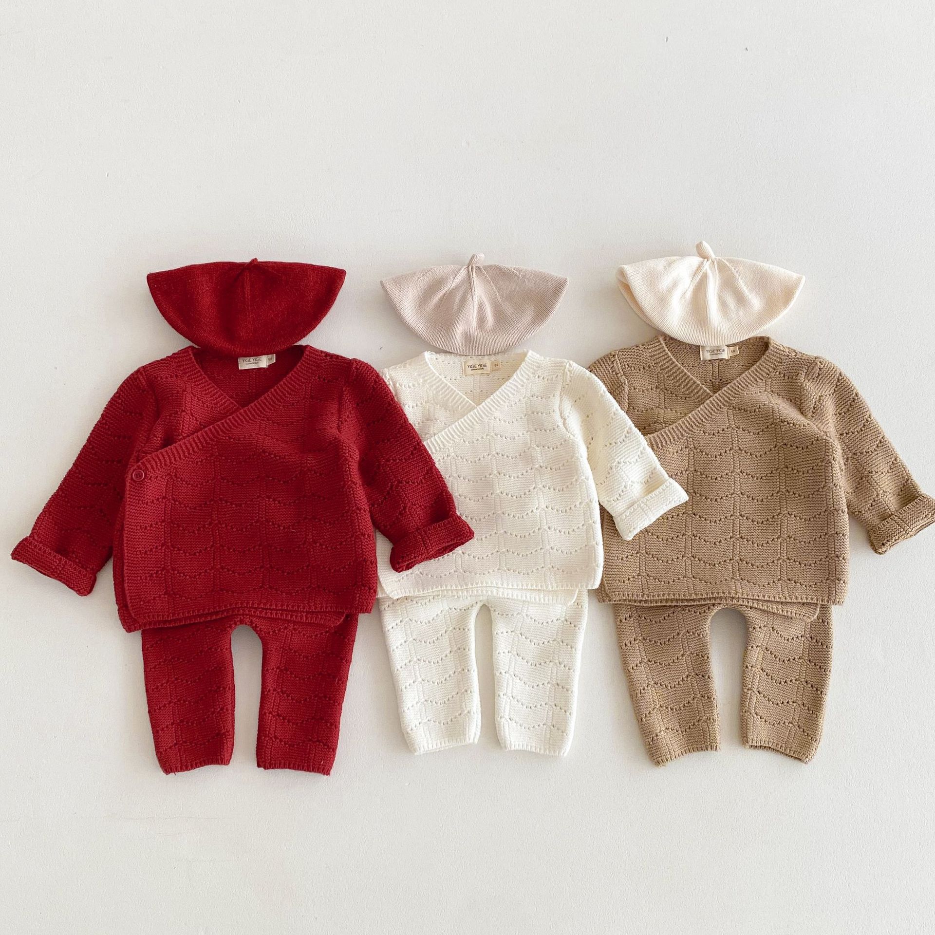 Ins 새로운 남성과 여성의 아기 3 색 스웨터 아기 나들이 니트 양복