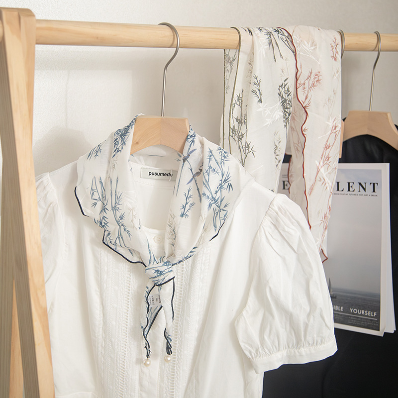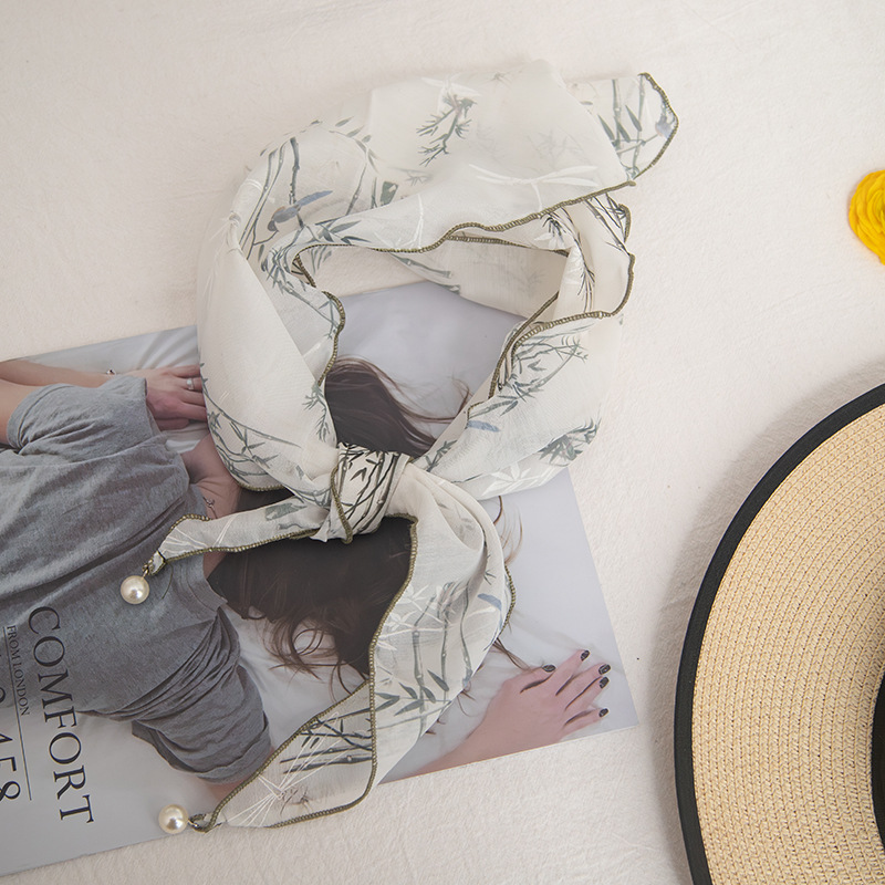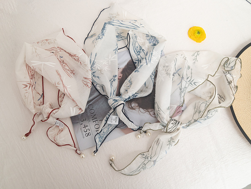 2025 새로운 봄과 여름 얇은 스카프 예술적 복고풍 스타일 신선한 조커 작은 스카프 목 보호 에어컨 룸 스카프 여성스토어 가기