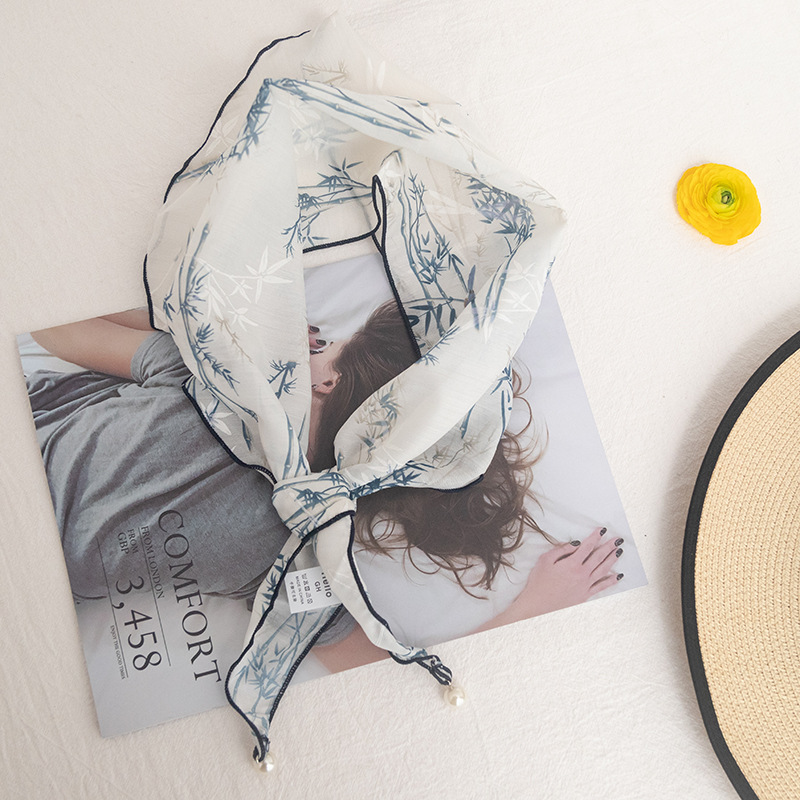 2025 새로운 봄과 여름 얇은 스카프 예술적 복고풍 스타일 신선한 조커 작은 스카프 목 보호 에어컨 룸 스카프 여성