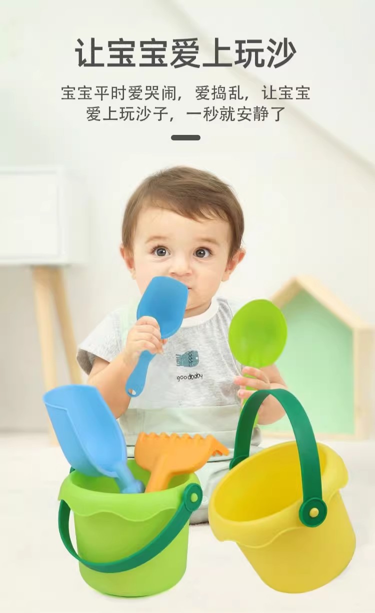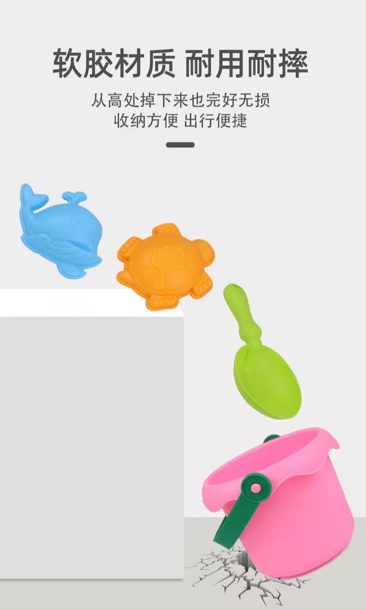 어린이 부드러운 고무 드롭 방지 비치 버킷 세트 소년과 소녀를위한 아기의 작은 삽 모래를 파고 스노우 툴과 함께 놀기 어린이 물 놀이 장난감스토어 가기