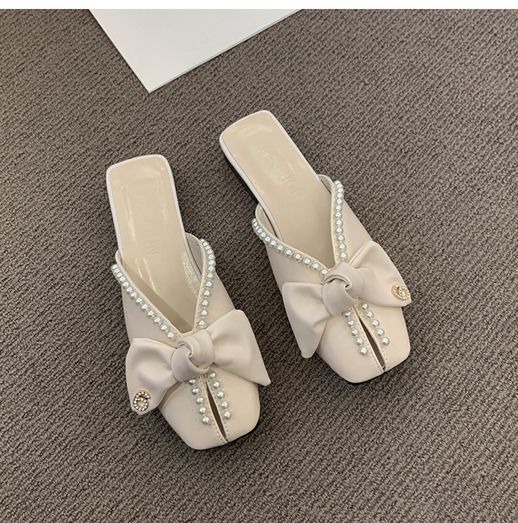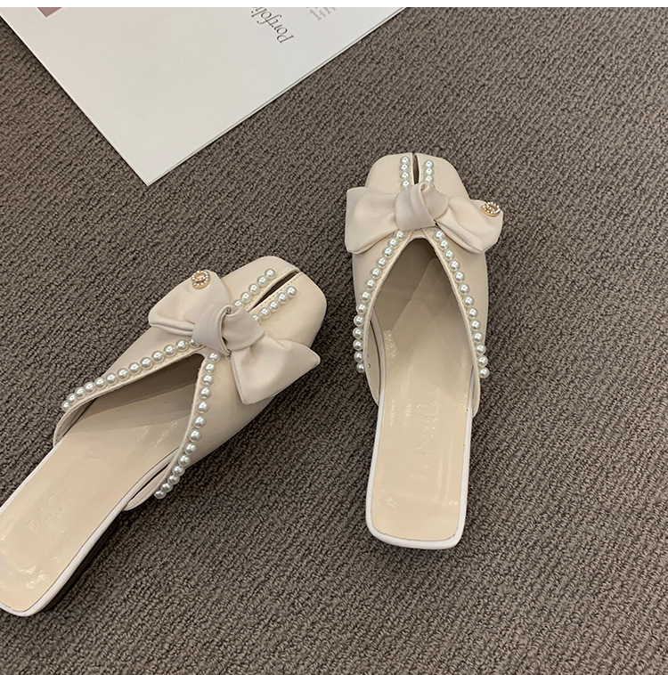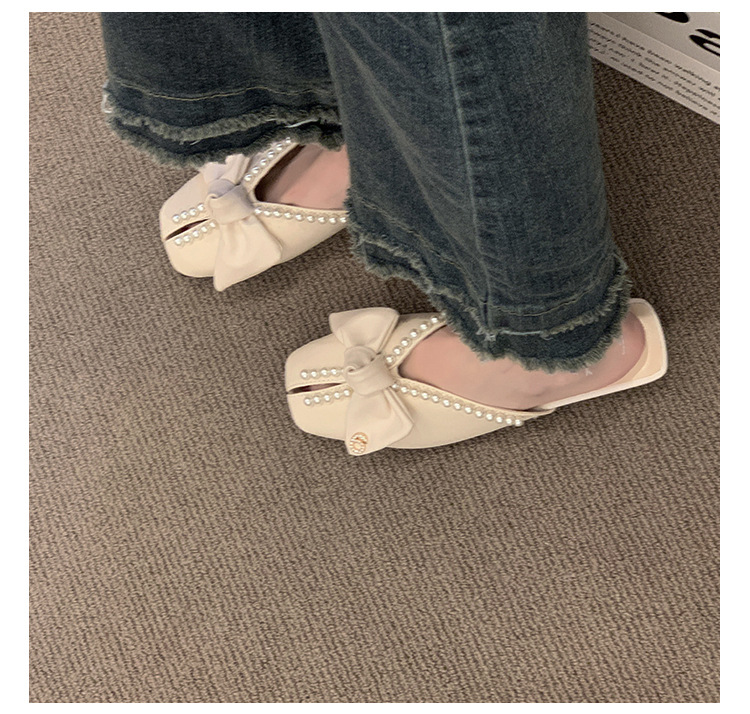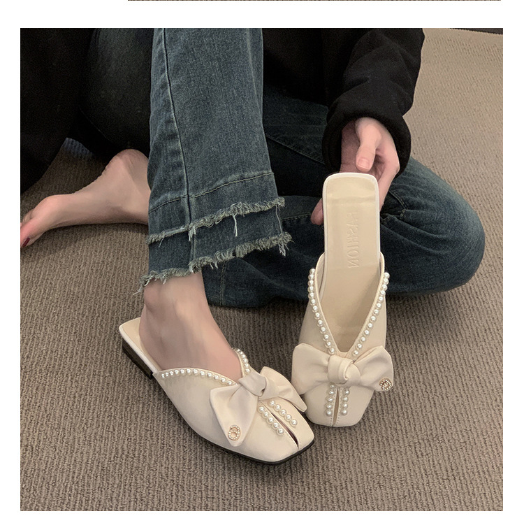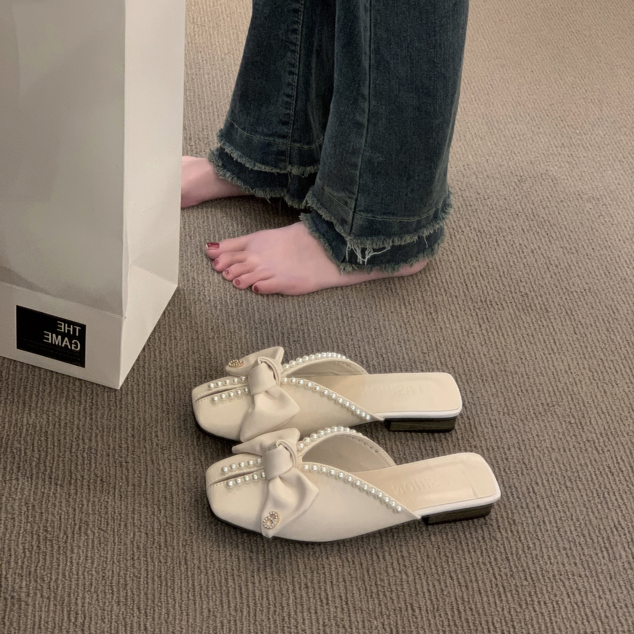 바오터우 슬리퍼 봄 아우터웨어 2025 새로운 한국식 활 진주 플랫 부드러운 바닥 입 쿨 레트로 하프 슬리퍼