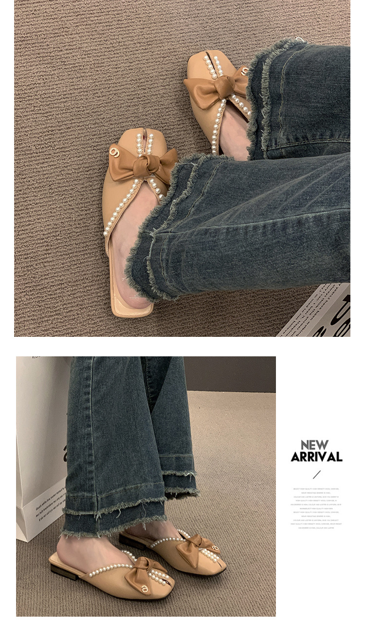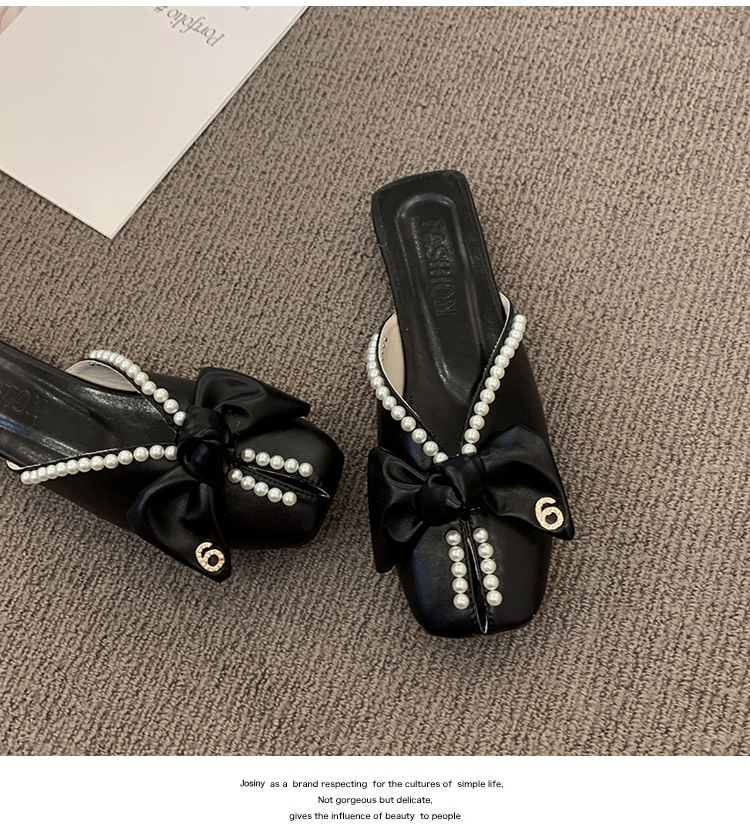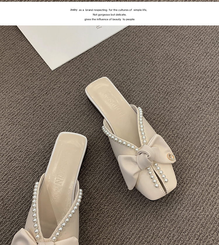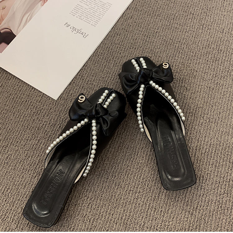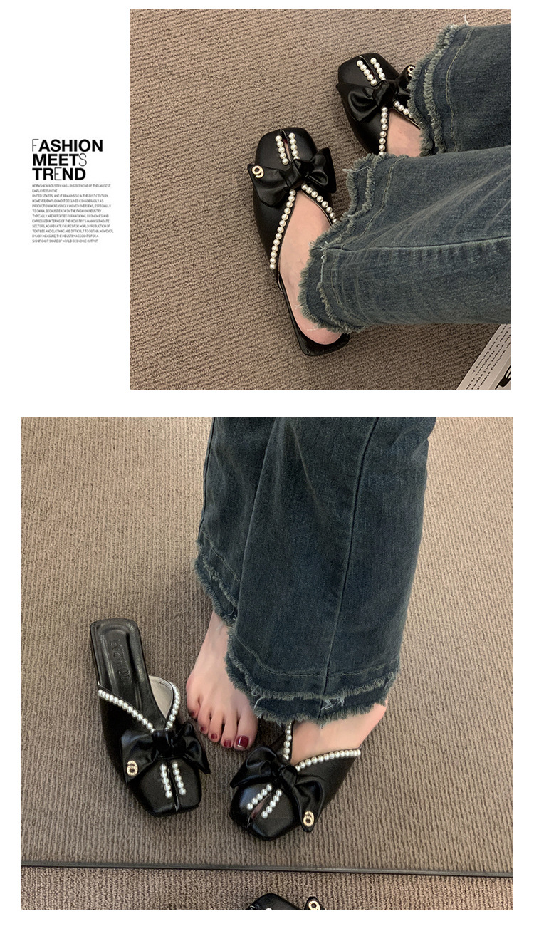바오터우 슬리퍼 봄 아우터웨어 2025 새로운 한국식 활 진주 플랫 부드러운 바닥 입 쿨 레트로 하프 슬리퍼