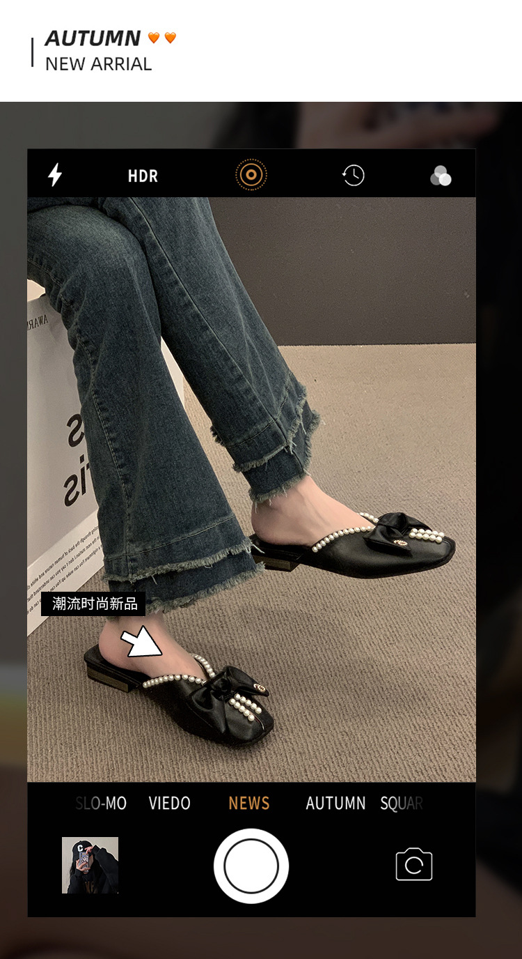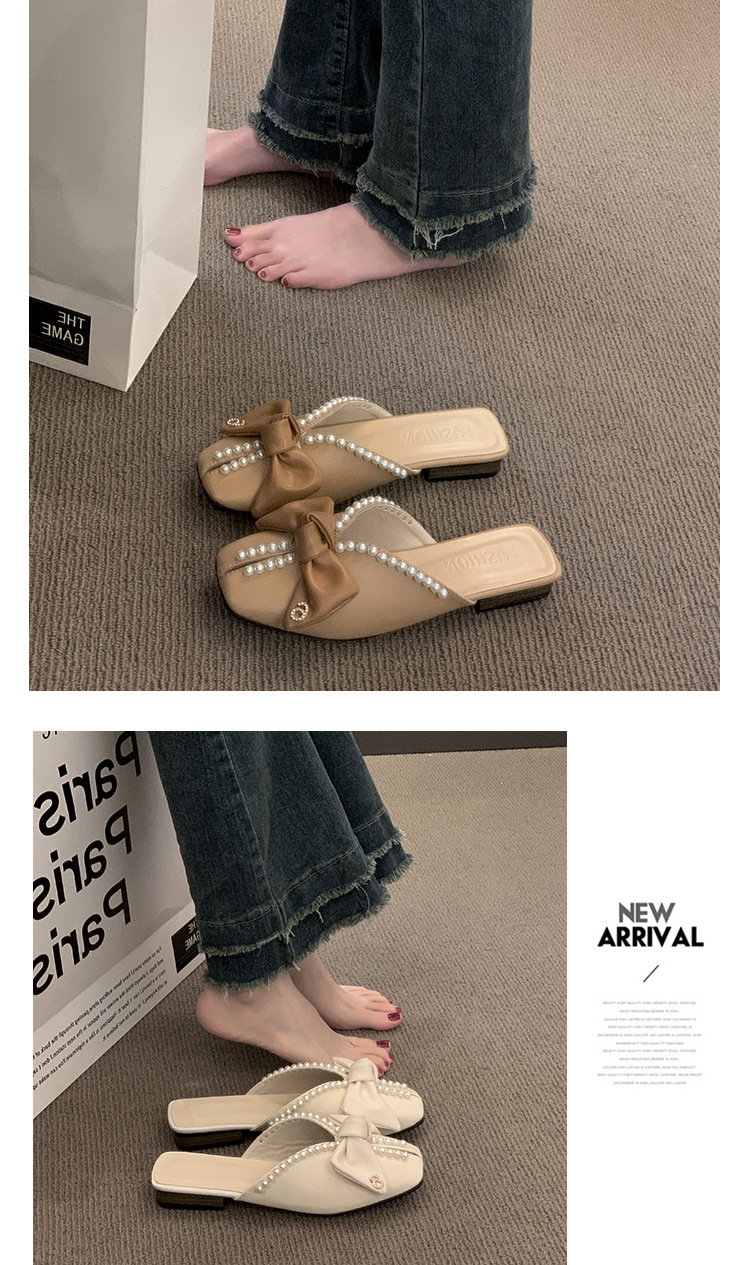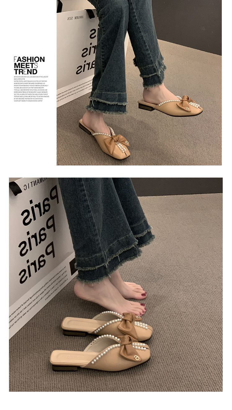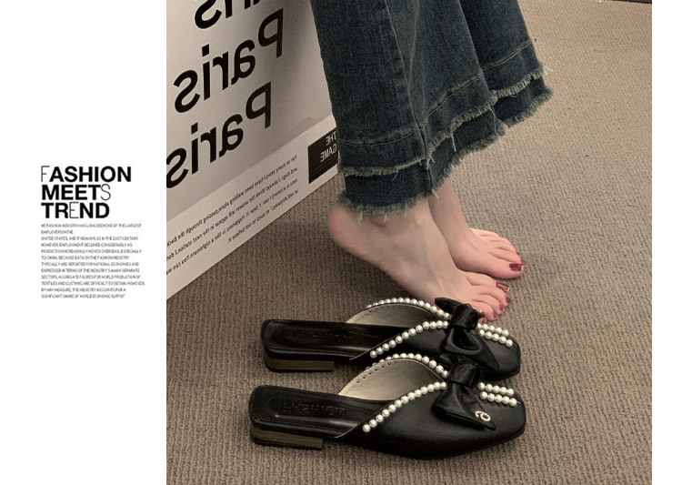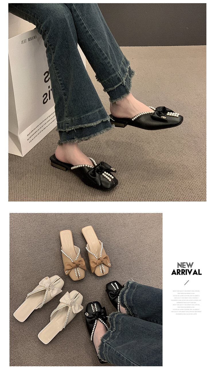바오터우 슬리퍼 봄 아우터웨어 2025 새로운 한국식 활 진주 플랫 부드러운 바닥 입 쿨 레트로 하프 슬리퍼스토어 가기