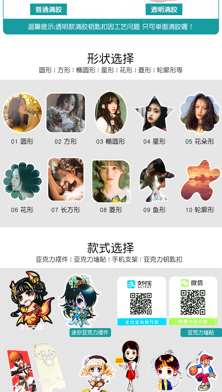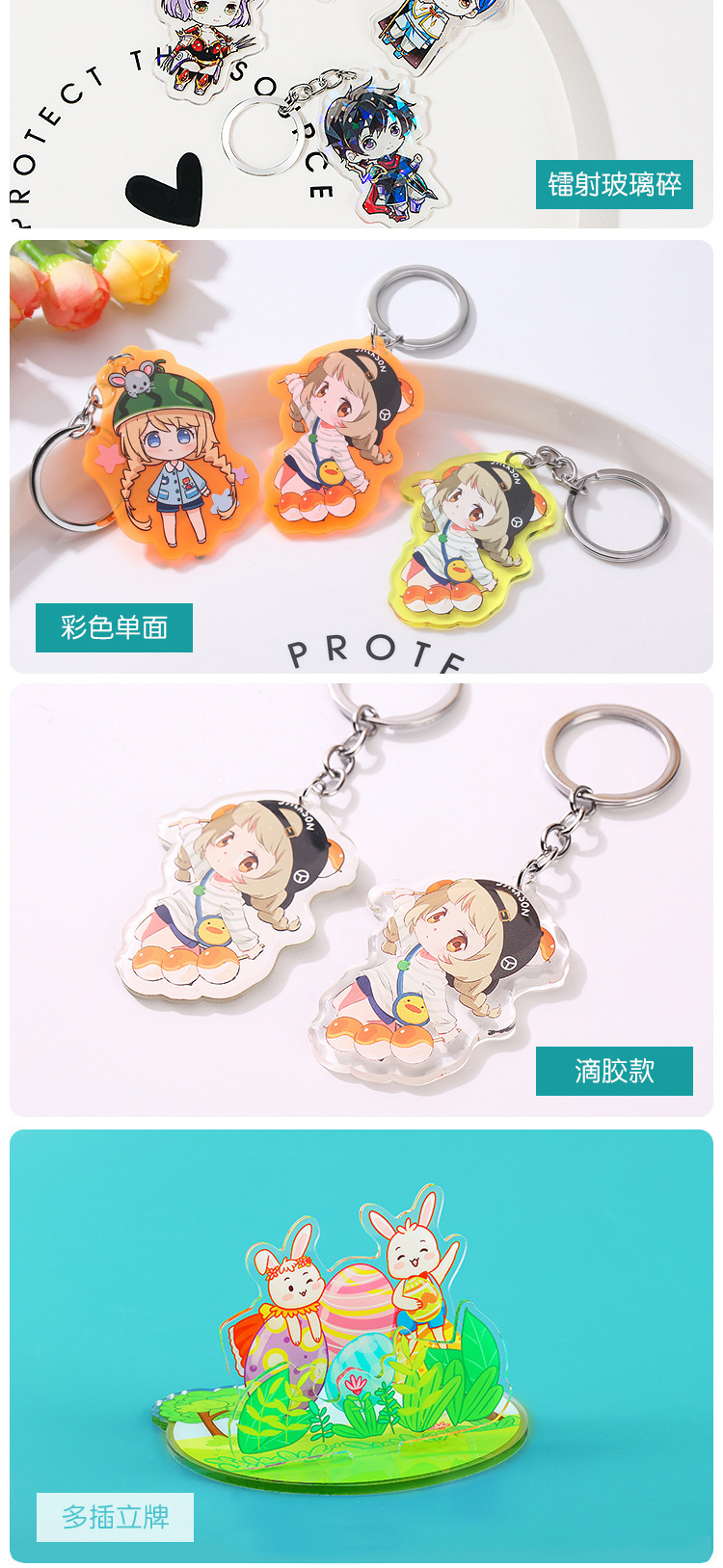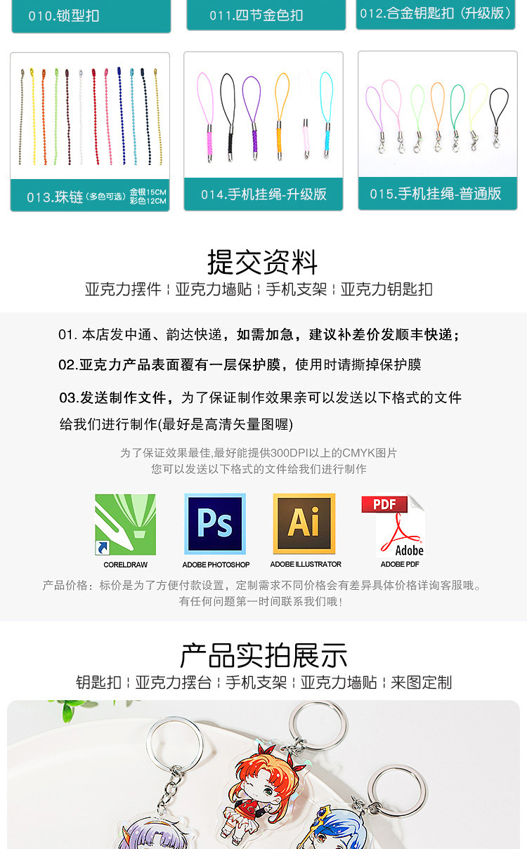 아크릴 키 체인 사용자 정의 애니메이션 만화 주변 장치 사용자 정의 양면 맞춤형 작은 선물 펜던트 도매