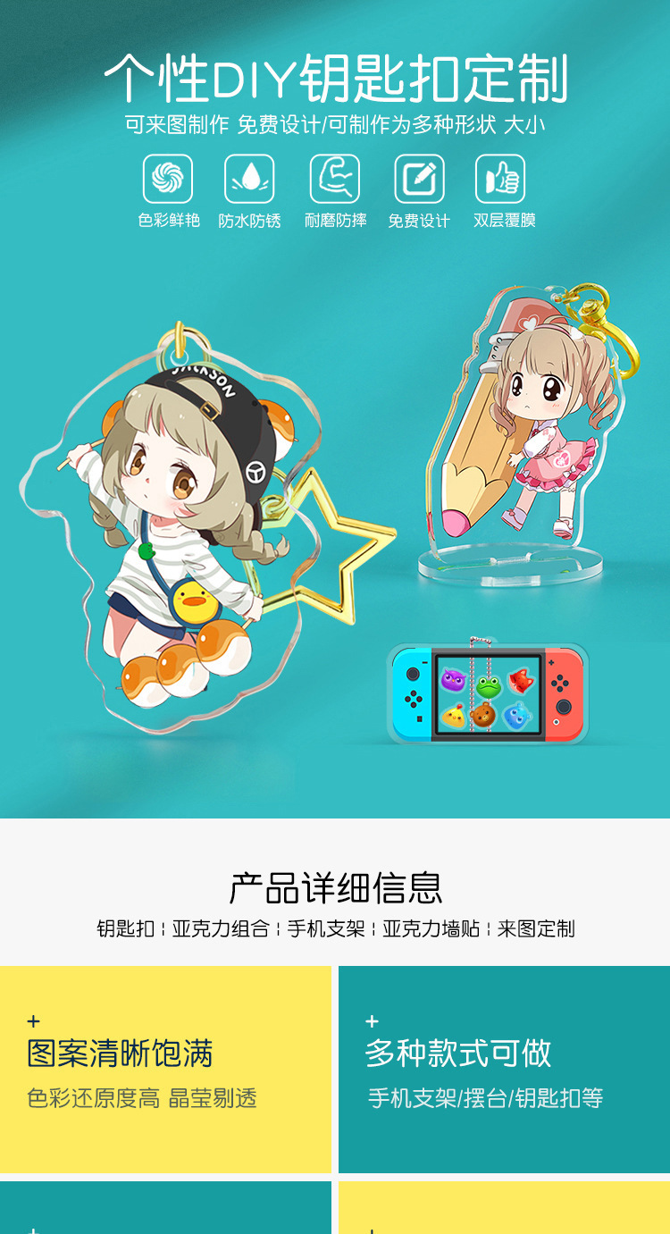 아크릴 키 체인 사용자 정의 애니메이션 만화 주변 장치 사용자 정의 양면 맞춤형 작은 선물 펜던트 도매스토어 가기