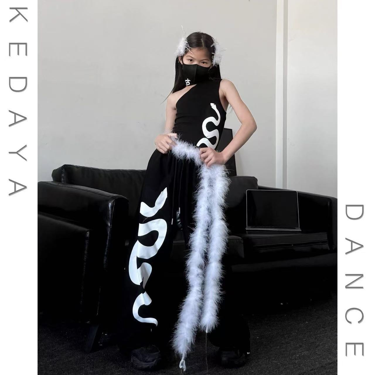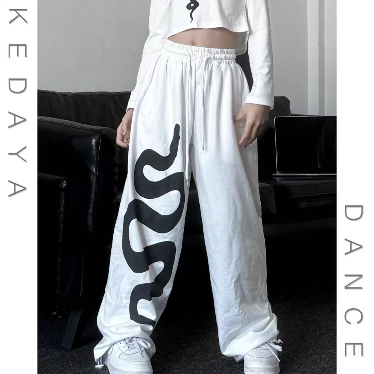 2025 봄과 여름 새로운 소년과 소녀 느슨한 다리 면뱀 인쇄 스웨트 트렌디 쿨 어린이 댄스 캐주얼 바지
