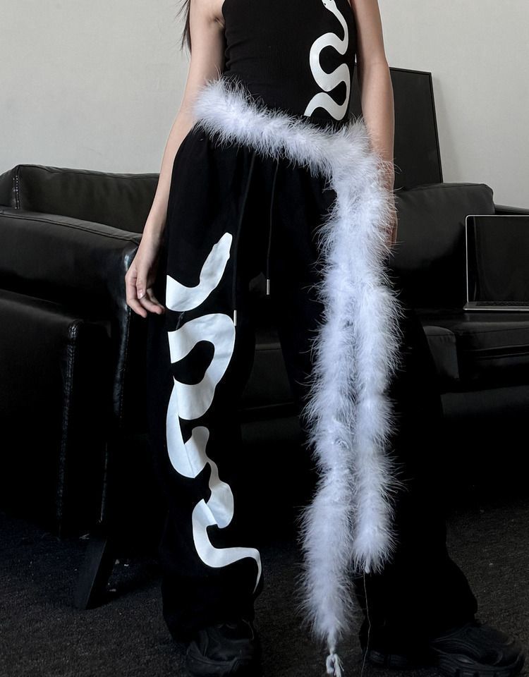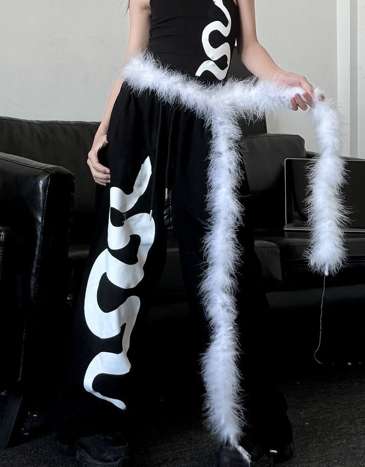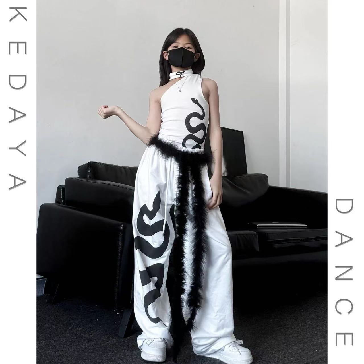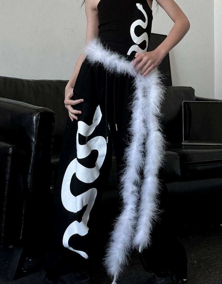 • 흑백 뱀 조끼 + 흑백 뱀 스웨트팬츠 + 흰색 모피 허리띠