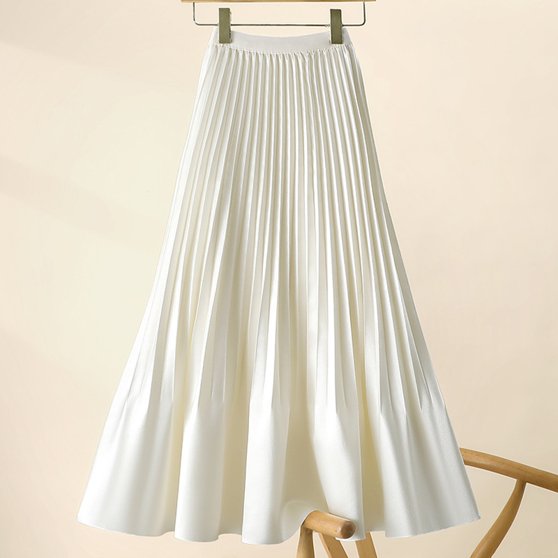 Acetic Acid Satin Pleated 치마 여성 봄과 가을 여름 높은 허리 슬리밍 프랑스 하이 엔드 미디 A 라인 피쉬 테일 스커트