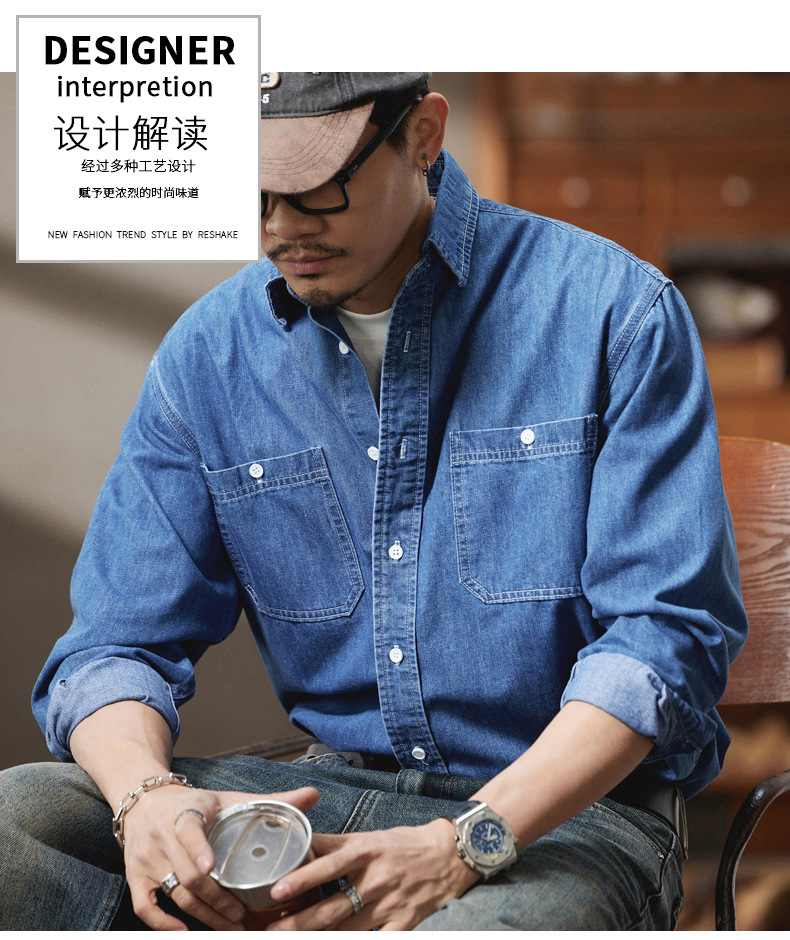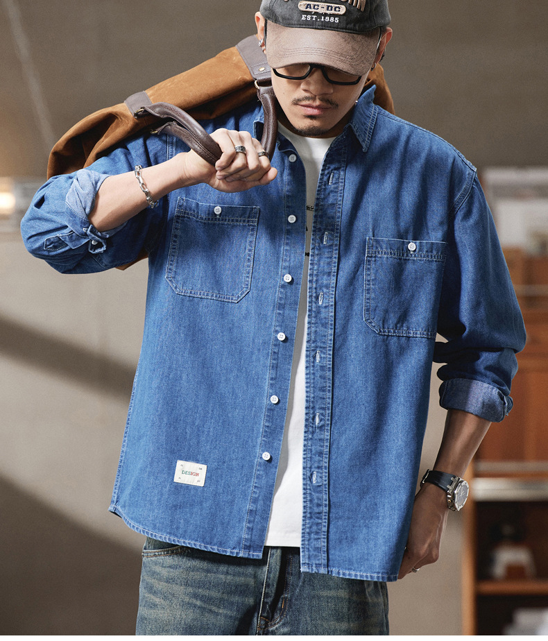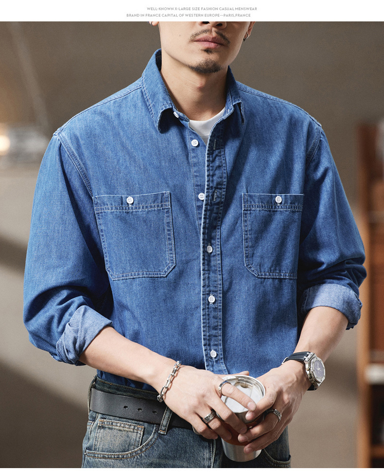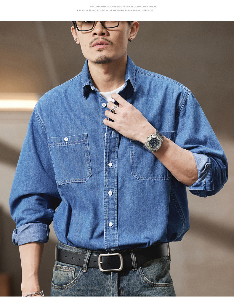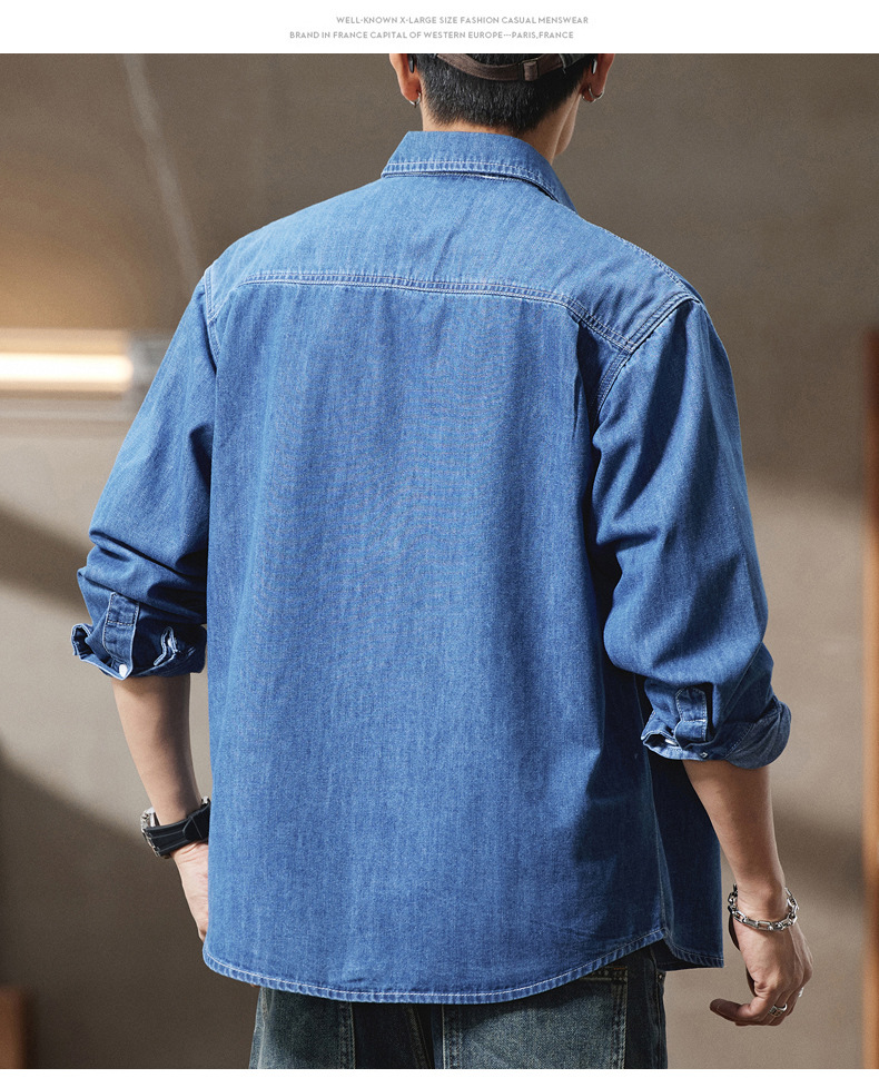 816 | 플러스 사이즈 남자의 봄과 여름 새로운 간단한 데님 셔츠 남자의 느슨한 플러스 사이즈 조커 얇은 긴 소매 셔츠