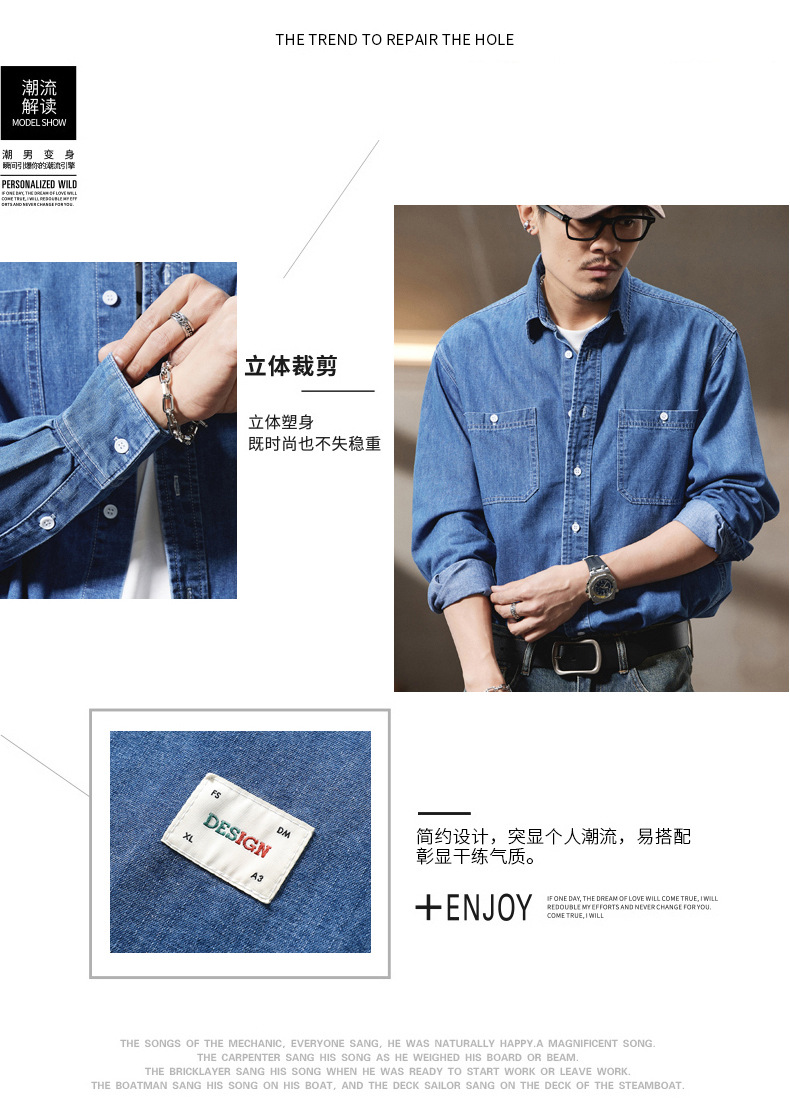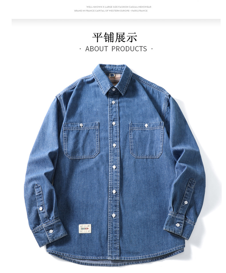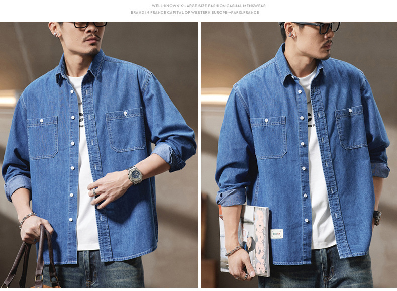 816 | 플러스 사이즈 남자의 봄과 여름 새로운 간단한 데님 셔츠 남자의 느슨한 플러스 사이즈 조커 얇은 긴 소매 셔츠스토어 가기