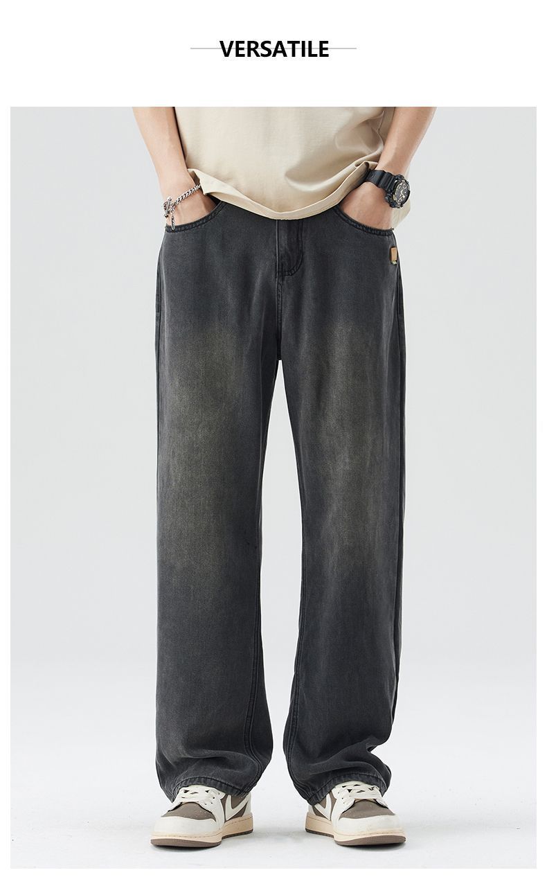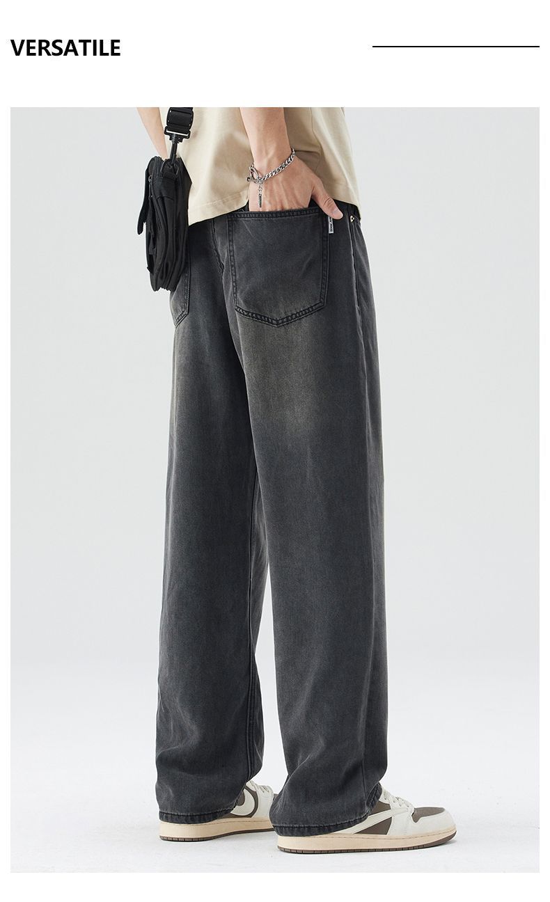 텐셀 청바지 남자 여름 얇은 느슨한 올 매치 와이드 레그 바지 남자 2025 새로운 캐주얼 스트레이트 바지