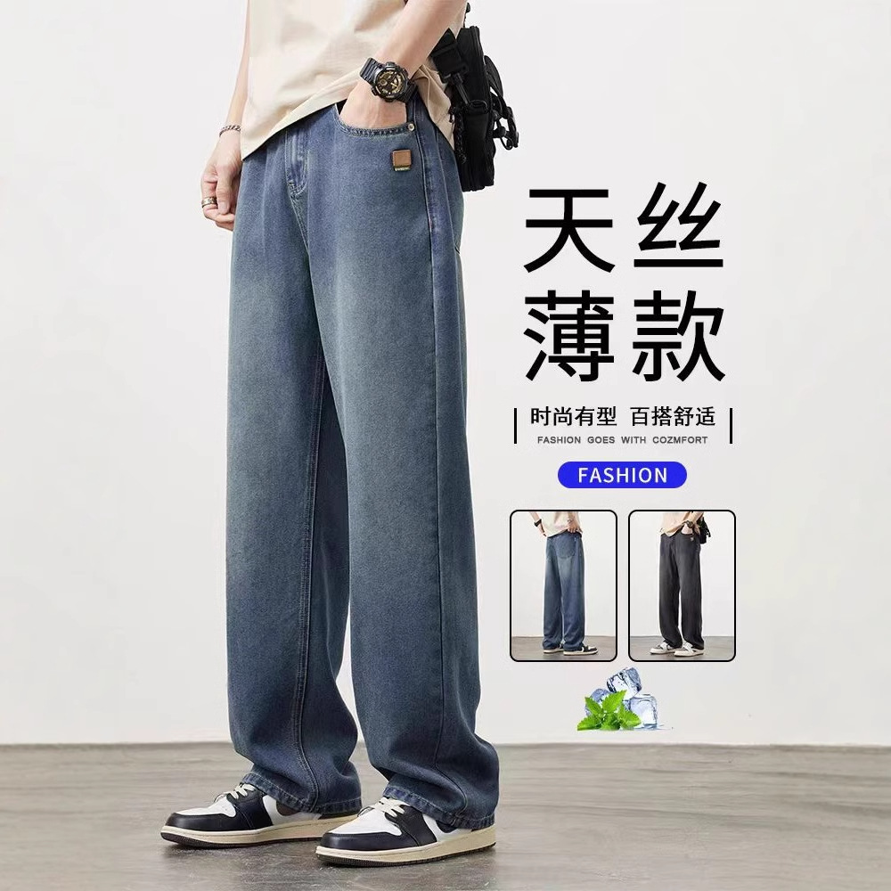 텐셀 청바지 남자 여름 얇은 느슨한 올 매치 와이드 레그 바지 남자 2025 새로운 캐주얼 스트레이트 바지스토어 가기