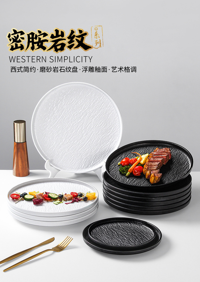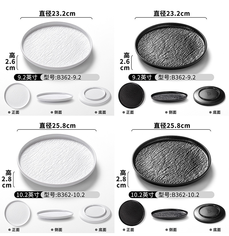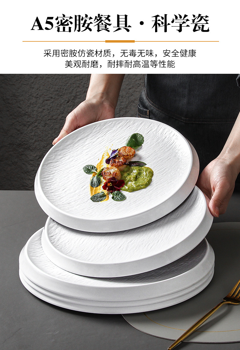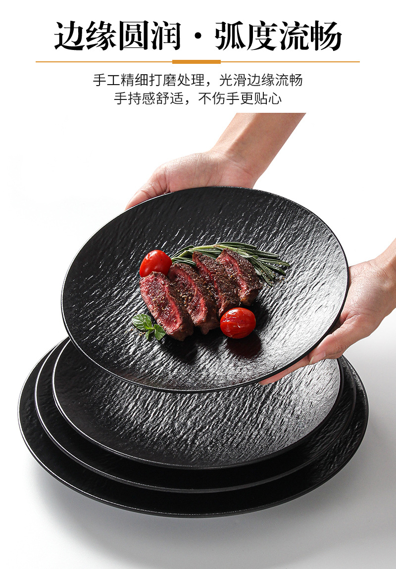 도자기 같은 멜라민 플레이트 서양식 스테이크 플레이트 블랙 디스크 호텔 식기 레스토랑 플레이트 상업용 일본 바베큐 플레이트