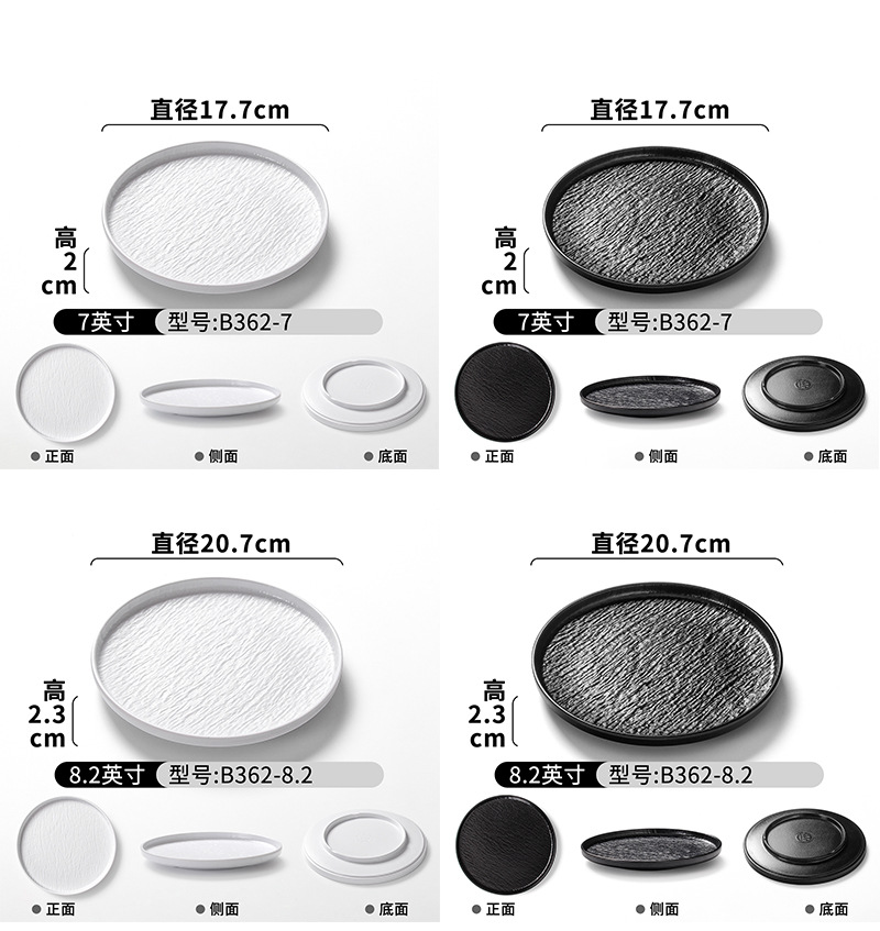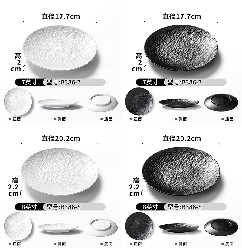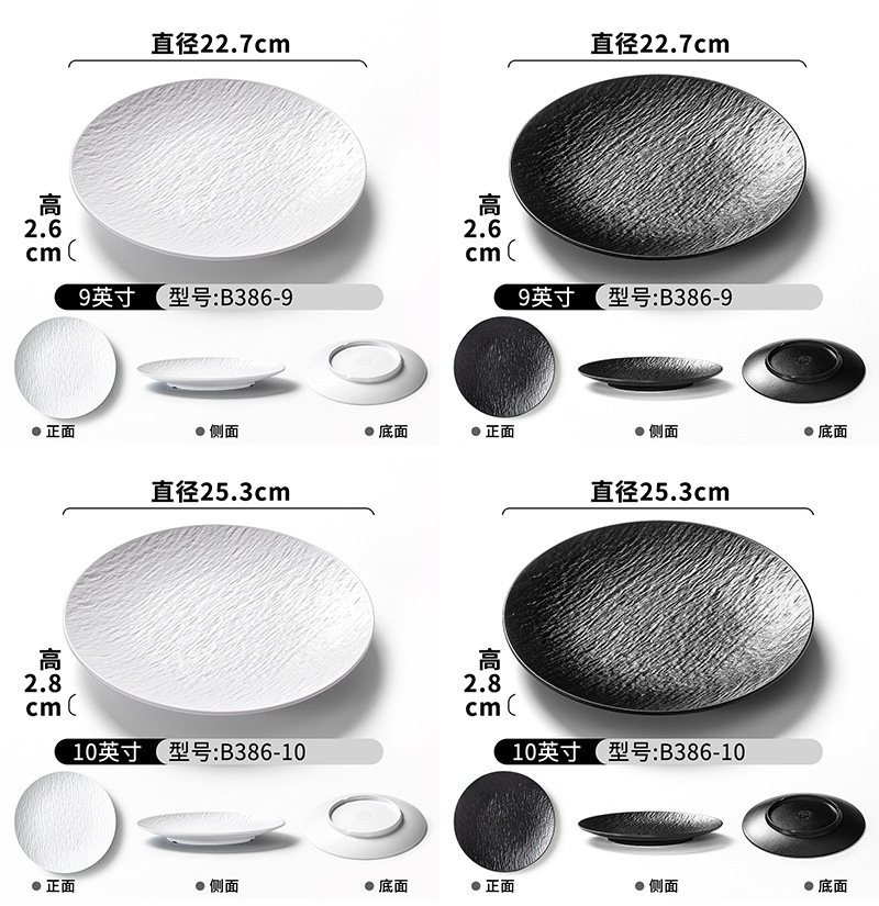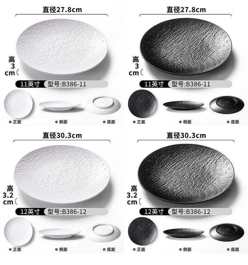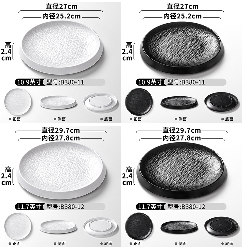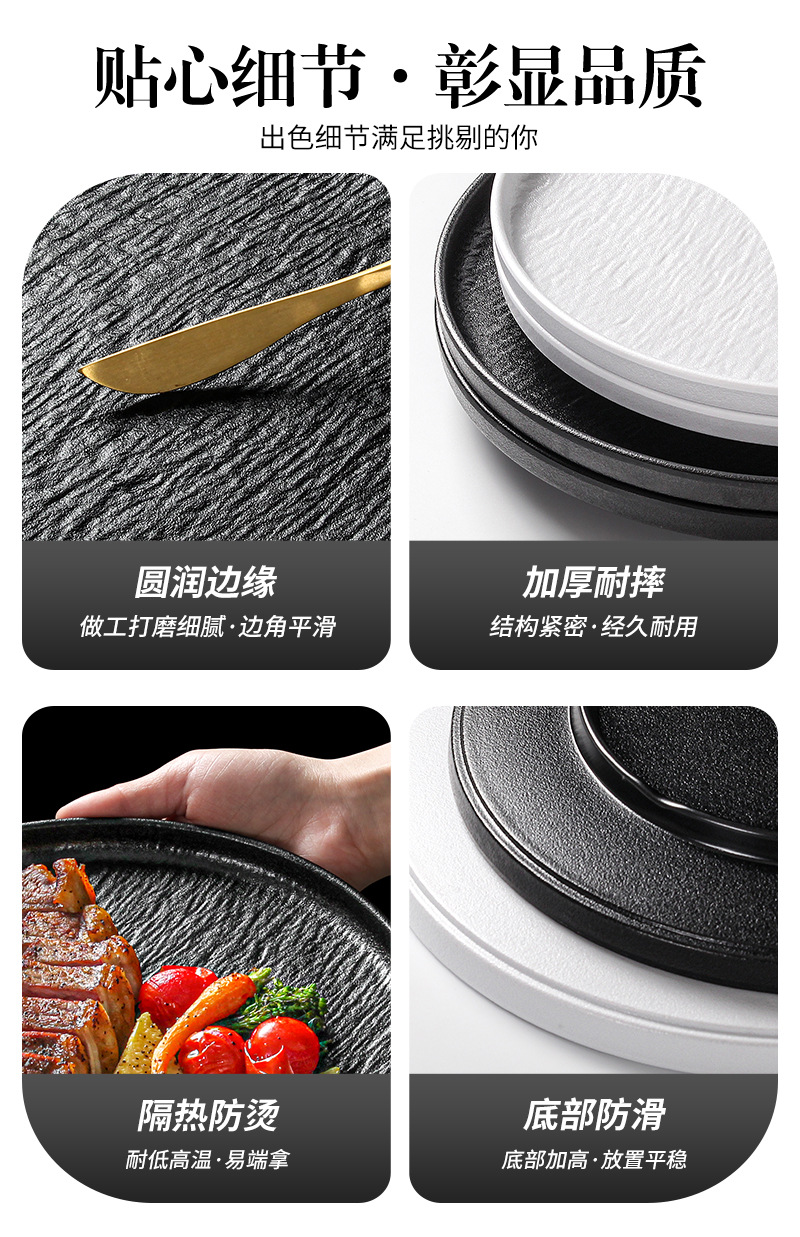 도자기 같은 멜라민 플레이트 서양식 스테이크 플레이트 블랙 디스크 호텔 식기 레스토랑 플레이트 상업용 일본 바베큐 플레이트