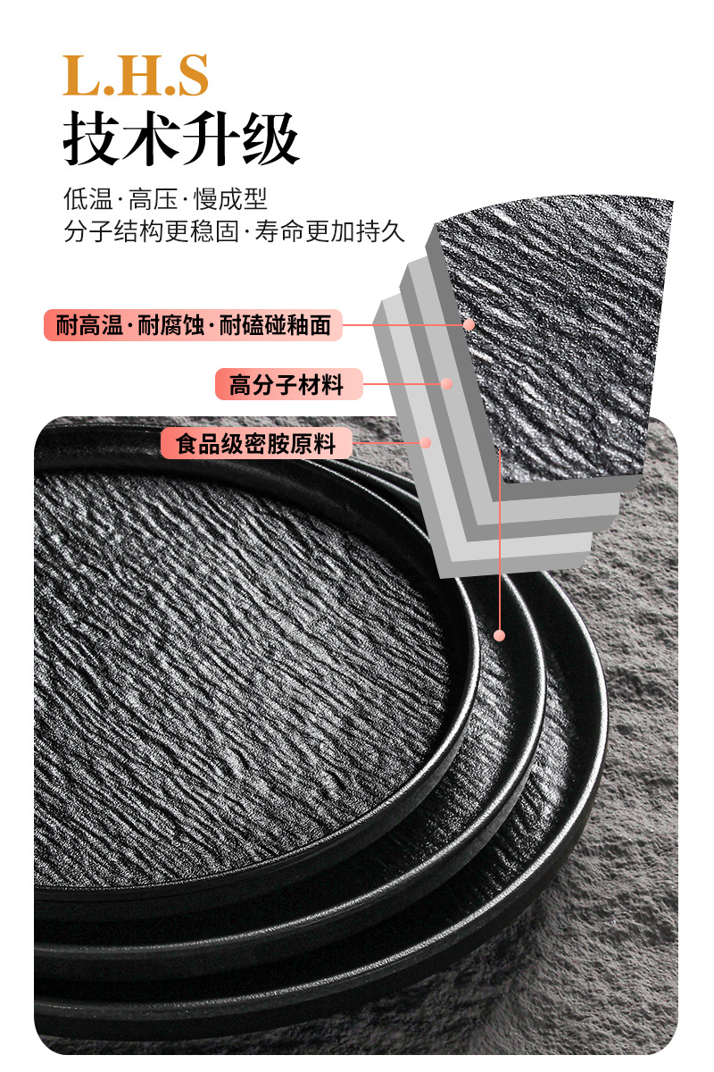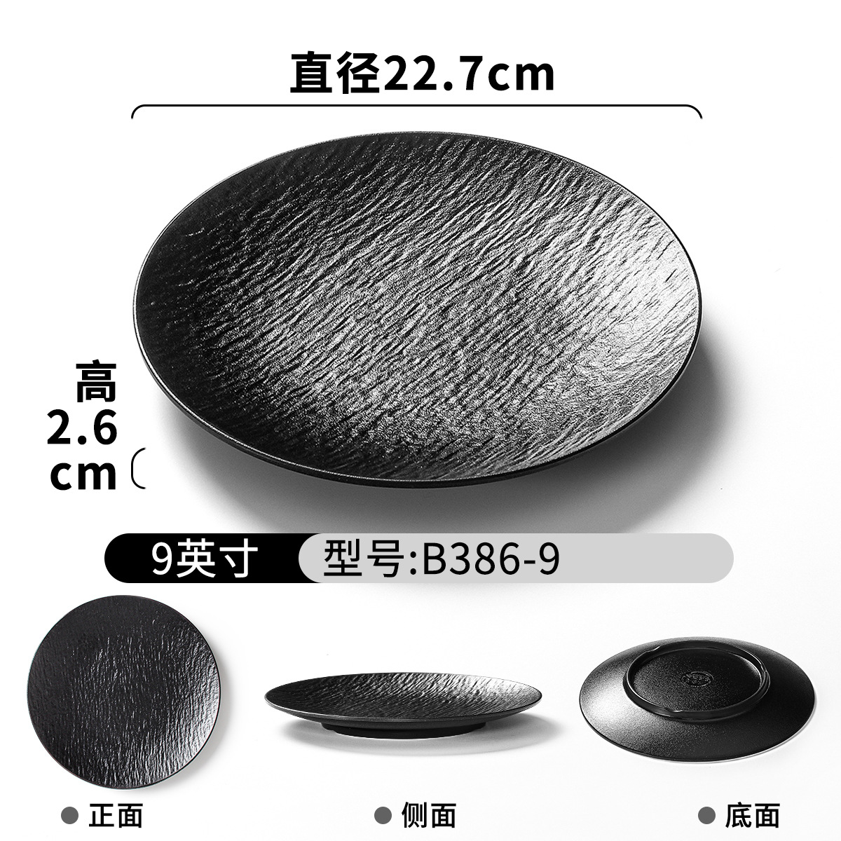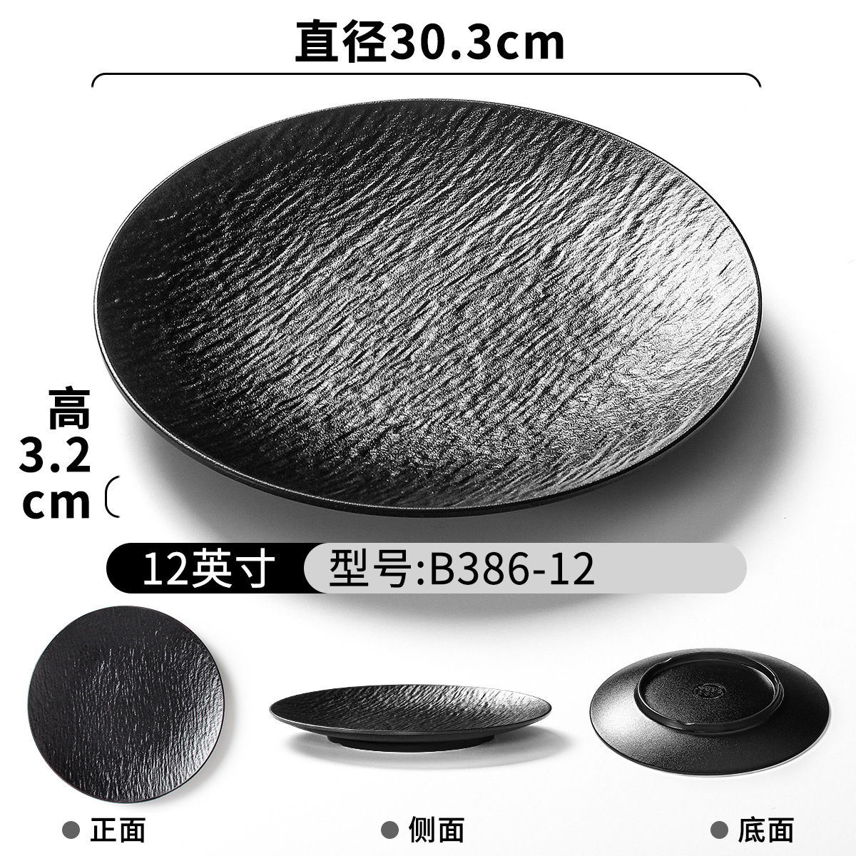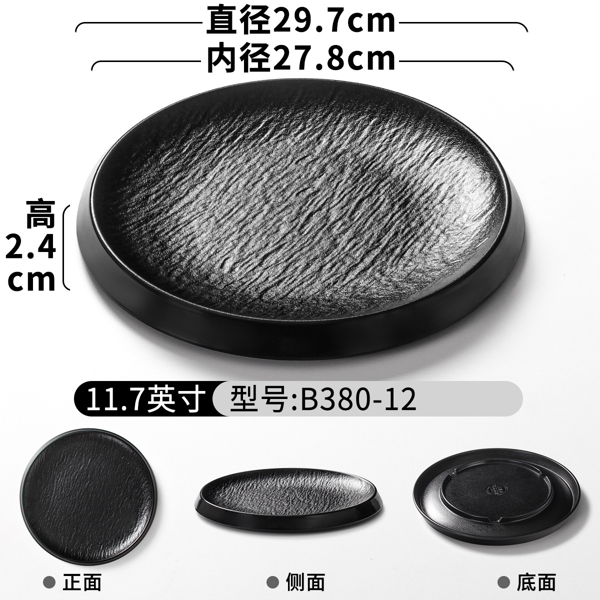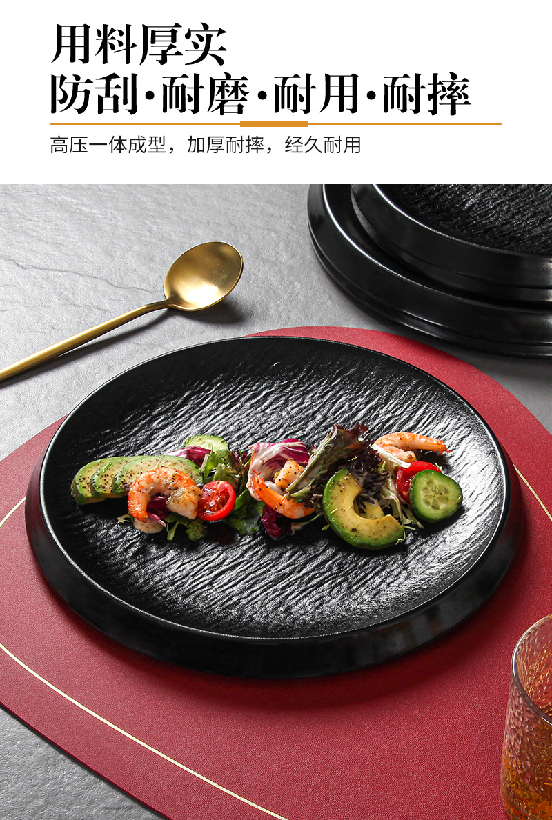 도자기 같은 멜라민 플레이트 서양식 스테이크 플레이트 블랙 디스크 호텔 식기 레스토랑 플레이트 상업용 일본 바베큐 플레이트스토어 가기