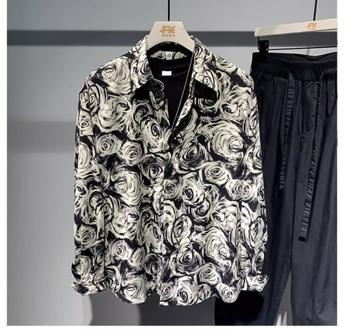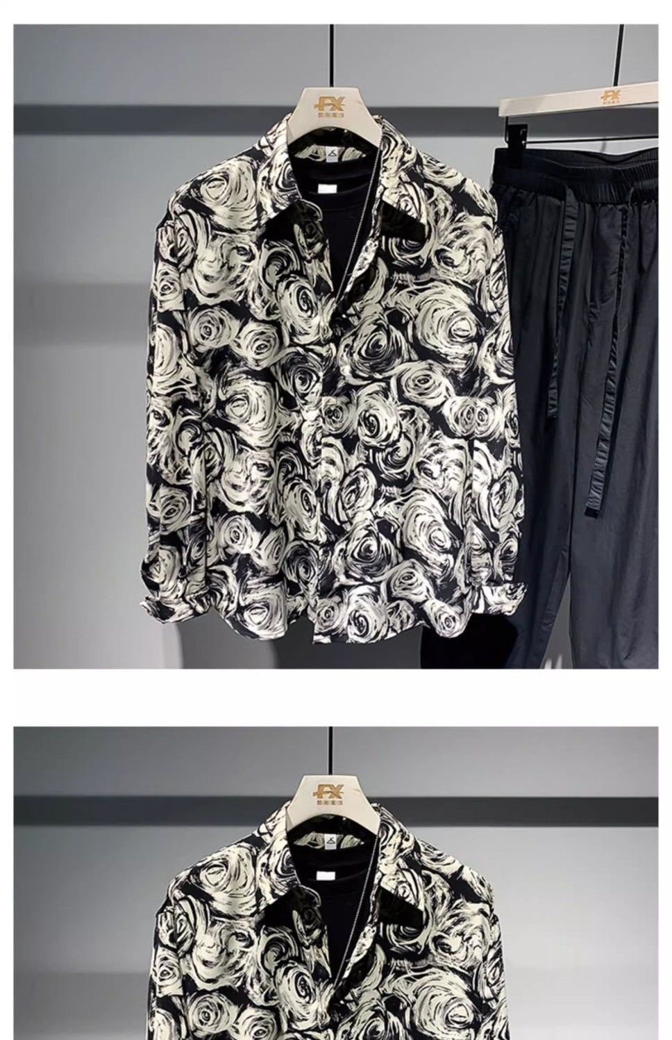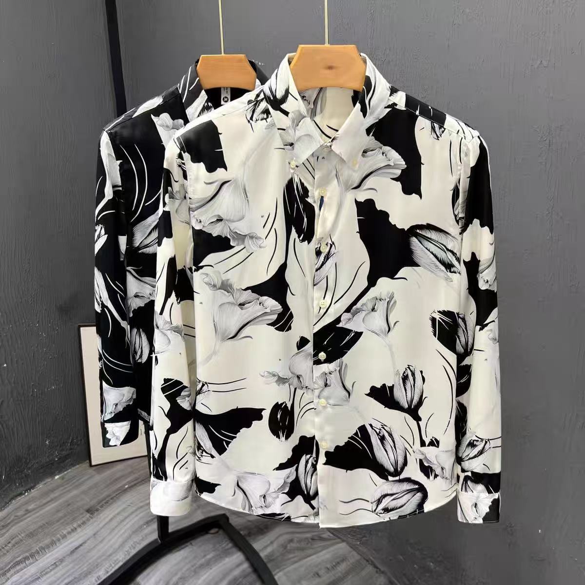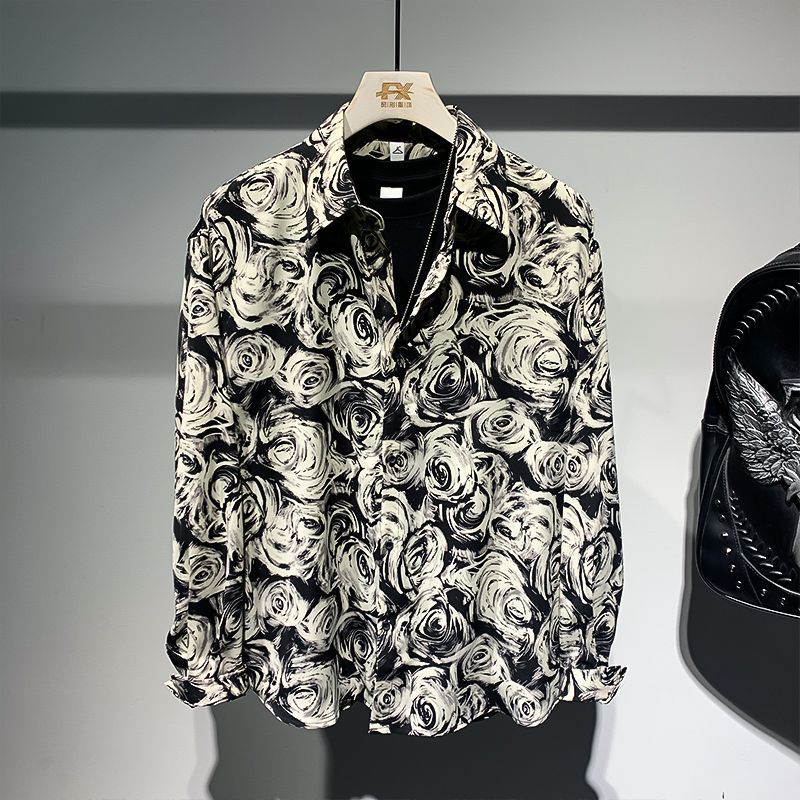 홍콩 스타일 남성용 긴 소매 옷깃 꽃 셔츠 2025 봄과 가을 새로운 유행 맞춤형 캐주얼 셔츠스토어 가기