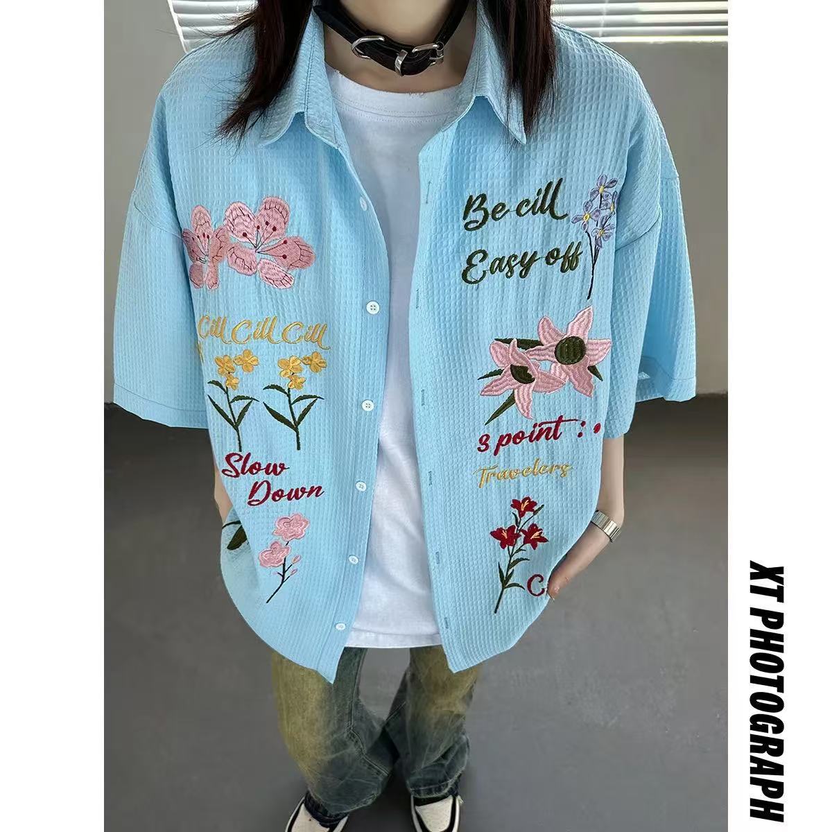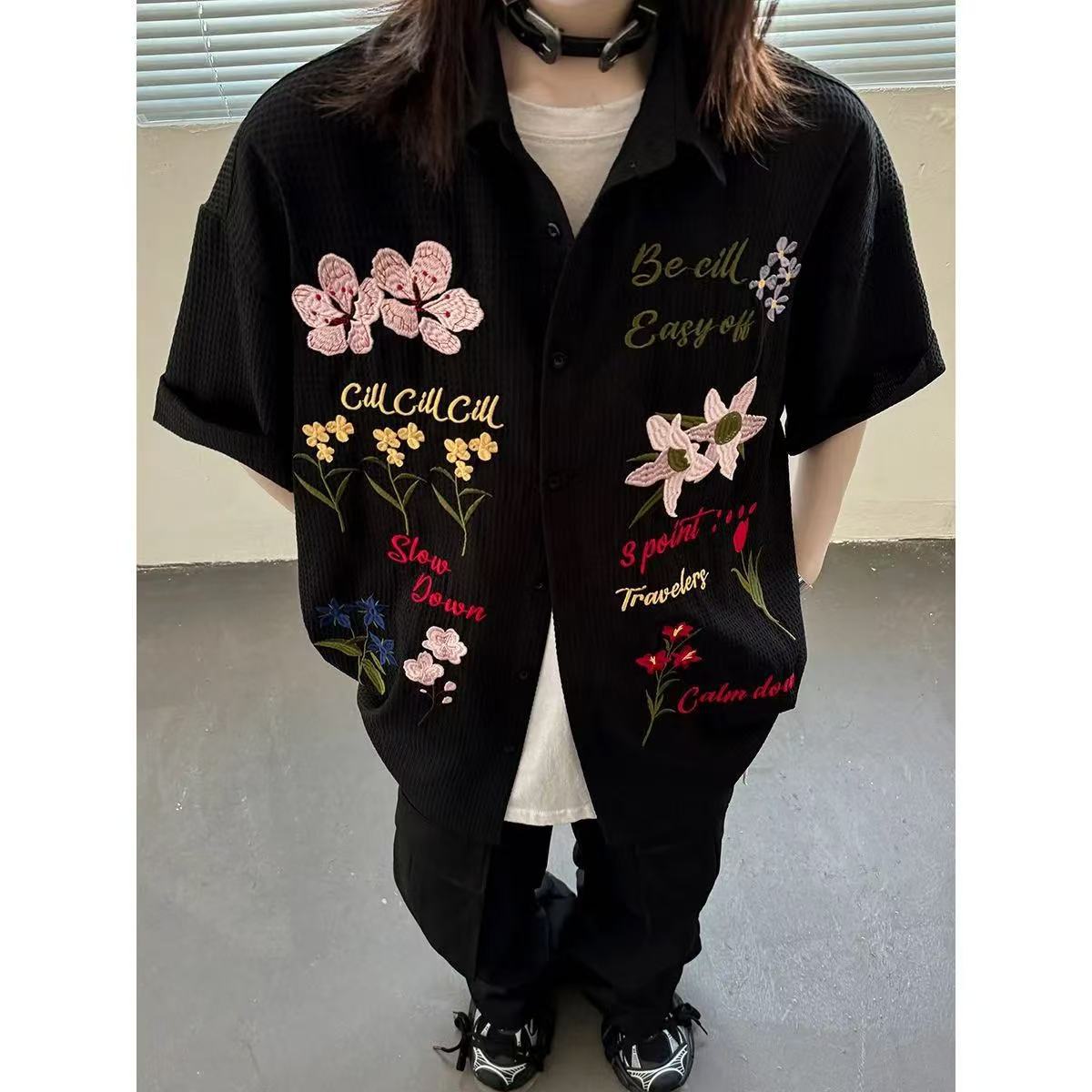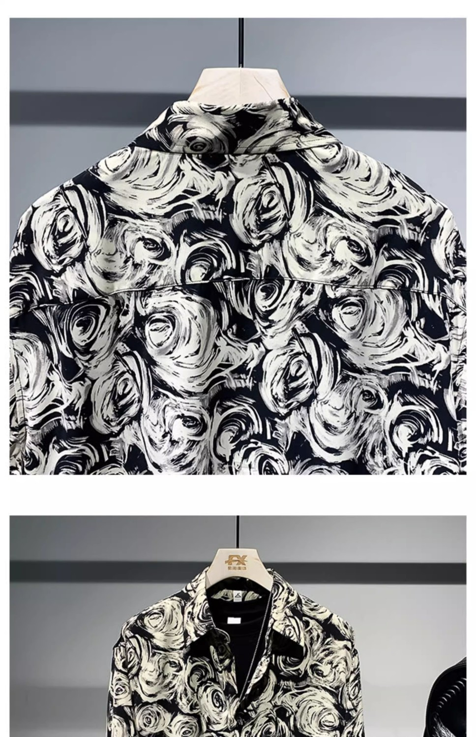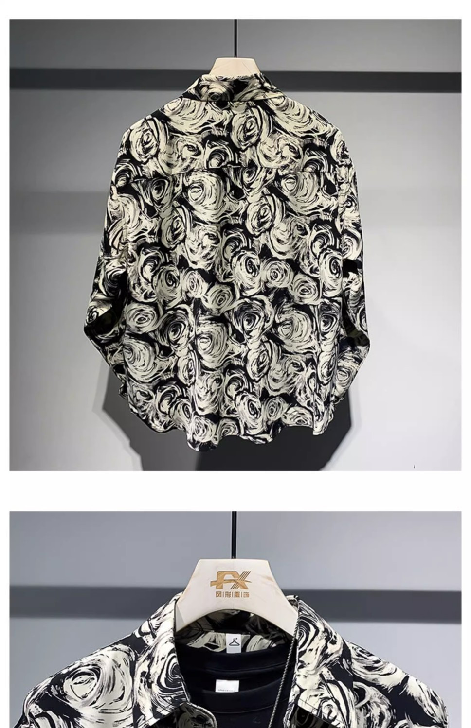 홍콩 스타일 남성용 긴 소매 옷깃 꽃 셔츠 2025 봄과 가을 새로운 유행 맞춤형 캐주얼 셔츠스토어 가기