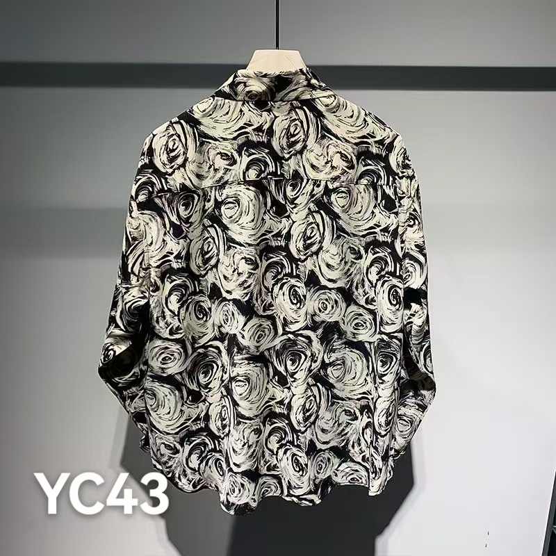 • YC23 블랙 고품질 쿨 실크 셔츠