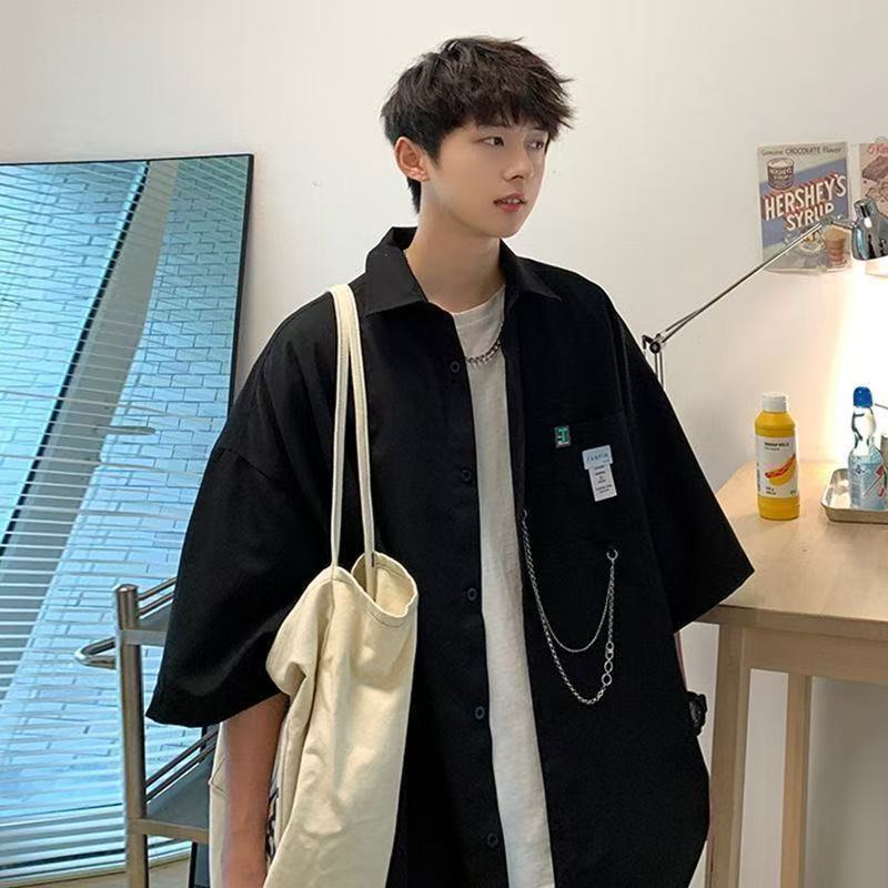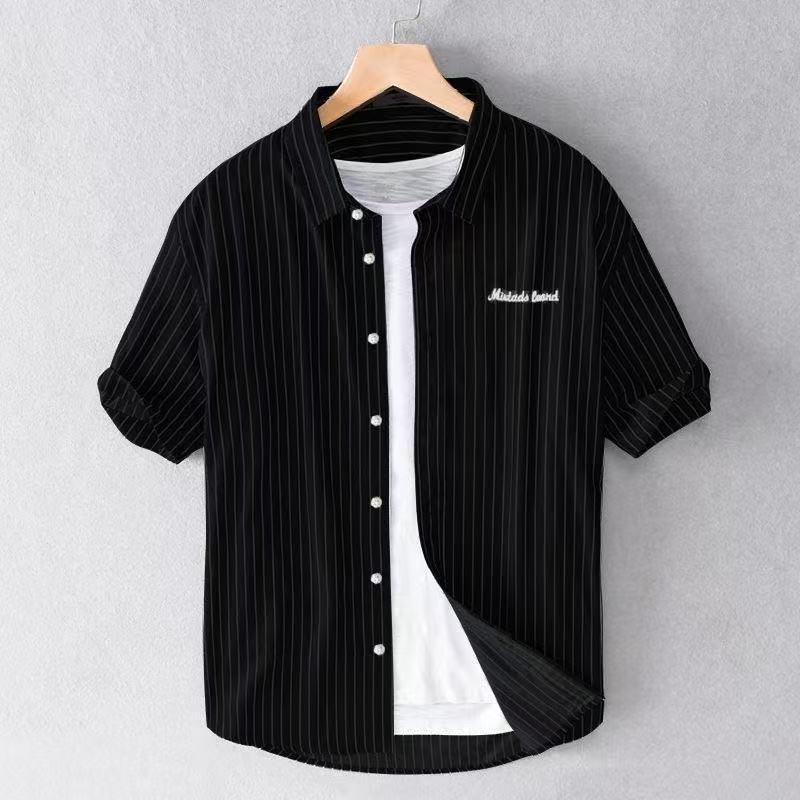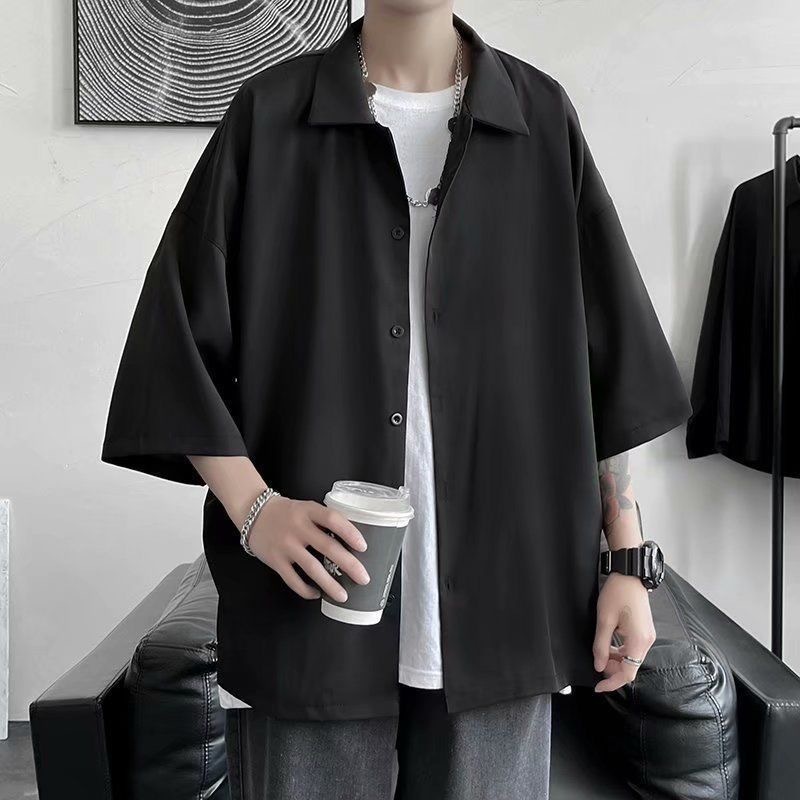 • YC12 블랙 고품질 쿨 실크 코튼 셔츠