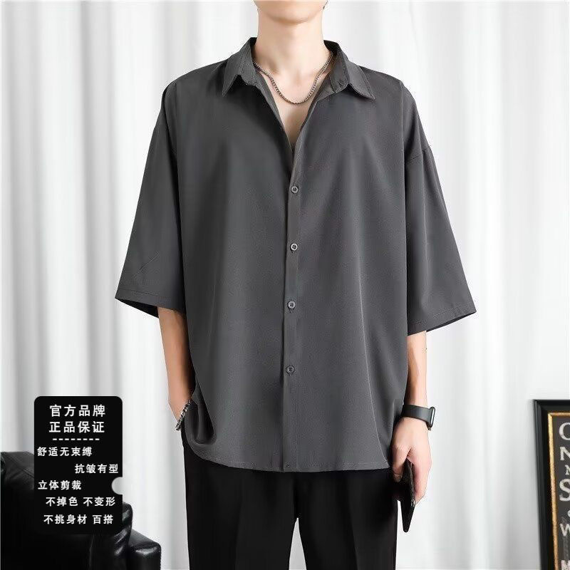 • YC08 그레이 고품질 아이스 실크 셔츠