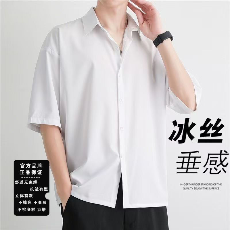 • YC08 화이트 고품질 아이스 실크 셔츠