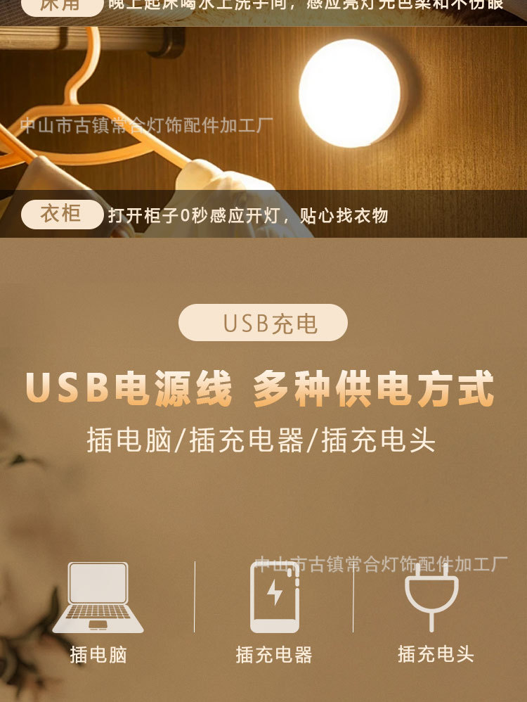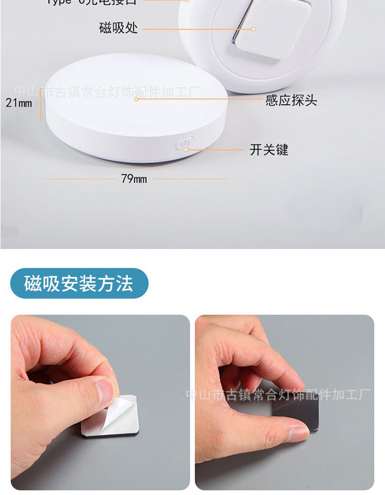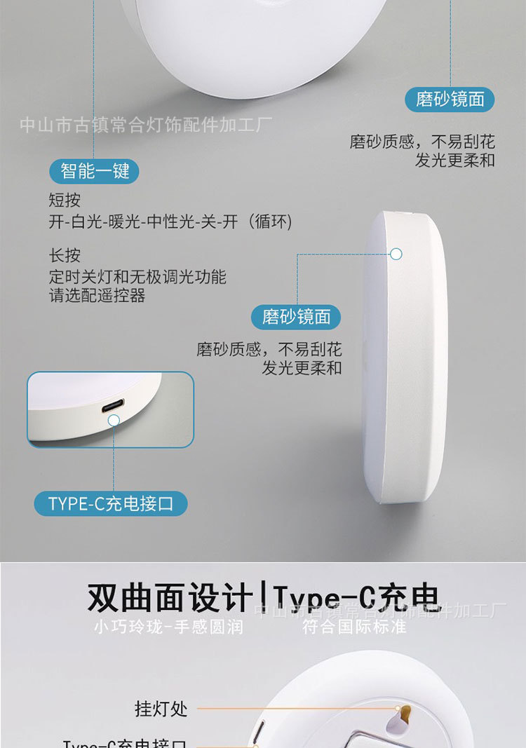 • 측면 버튼 스위치 + 유도 백색광 + 항상 켜짐 + 무단계 디밍(Type-C 인터페이스)