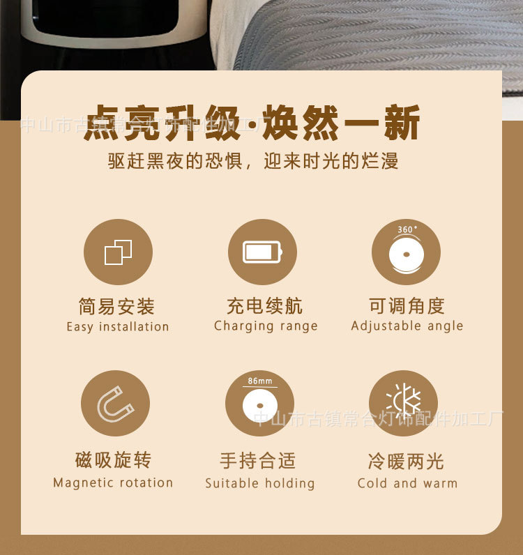 • 측면 버튼 스위치 + 유도 따뜻한 조명 + 항상 켜짐 + 무단계 디밍(Type-C 인터페이스)