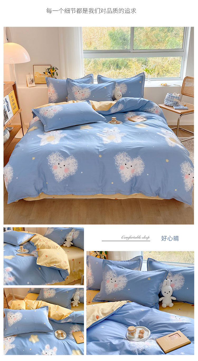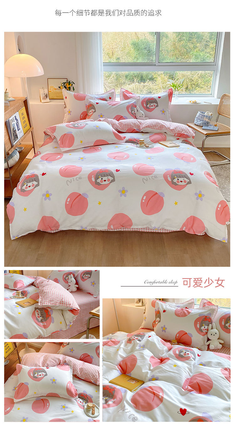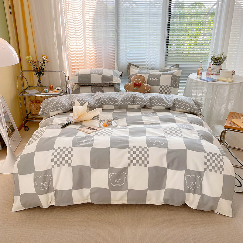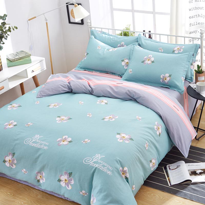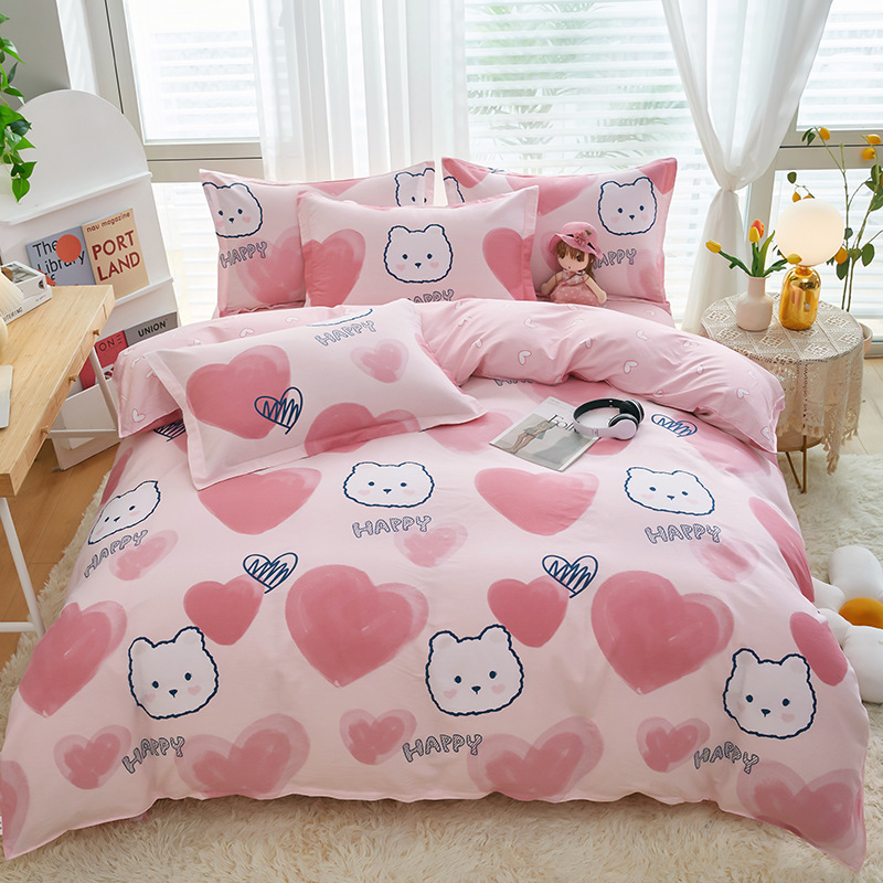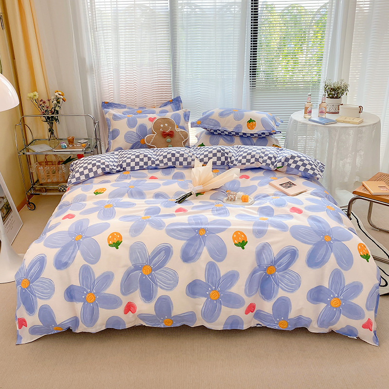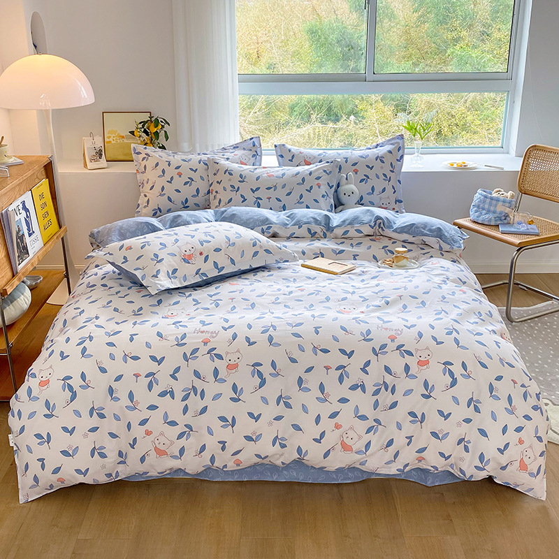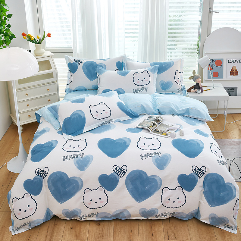 Ins 작은 신선한 면 4 조각 세트 간단한 만화 면 인쇄 학생 기숙사 침대 시트 퀼트 커버 3 피스 세트스토어 가기